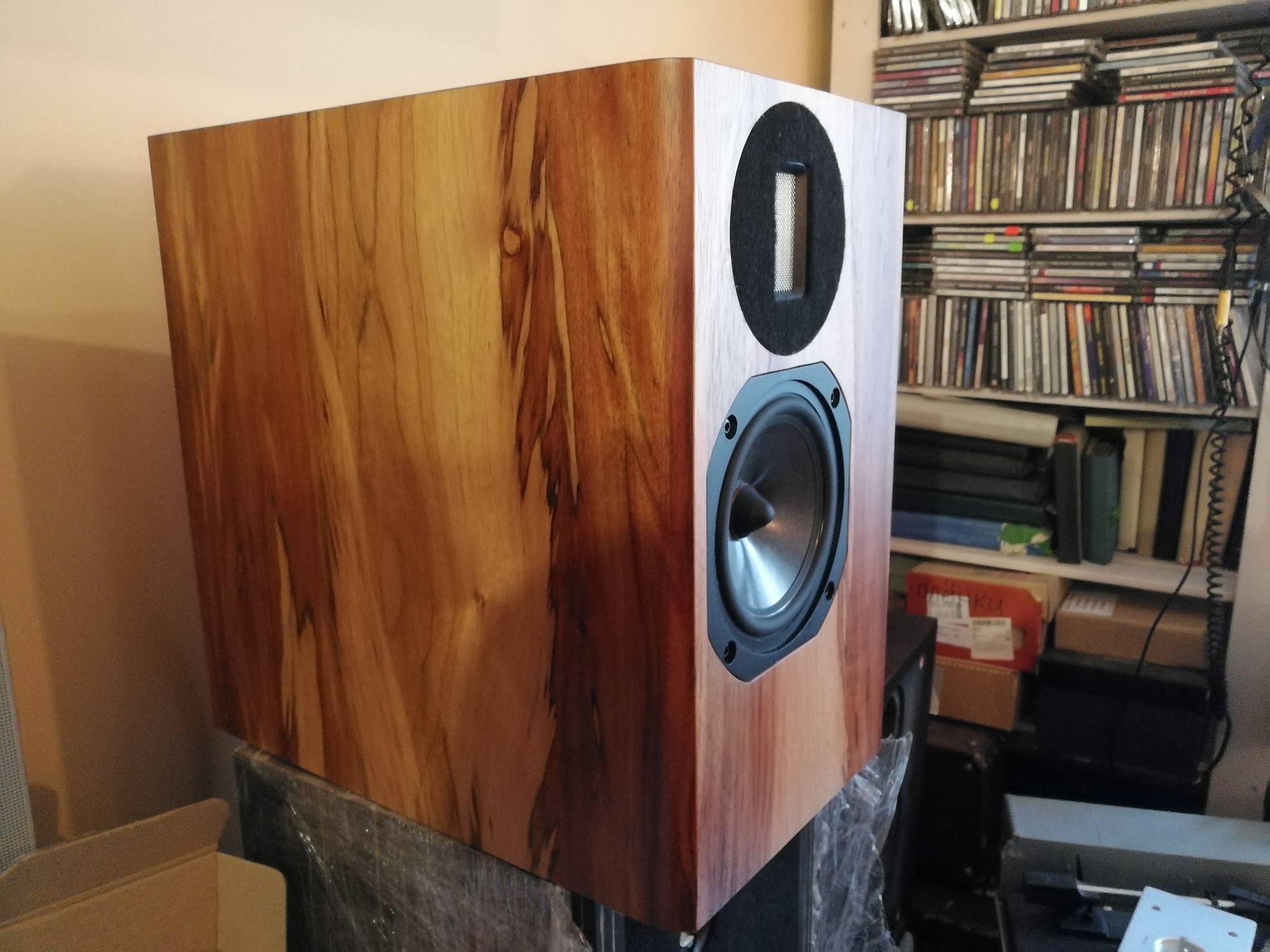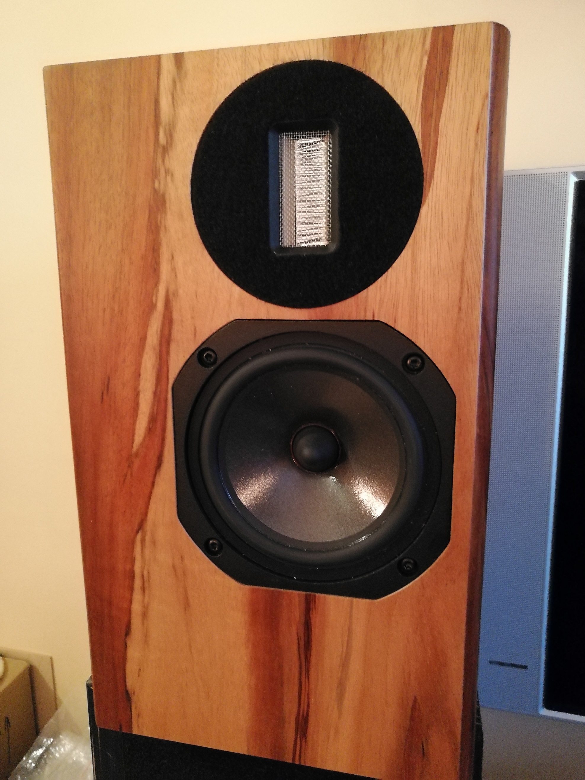 5. Главный герой программы – малогабаритные АС, оформление – ФИ, НЧ-СЧ диапазон отрабатывает пятидюймовый мидбас французской фирмы AUDAX с диффузором из материала аэрогель. Пищалки – ленточные SRT-7 от Дмитрия Малиновского. Частоты раздела, объем корпуса и прочие вопросы прошу задавать создателям системы.