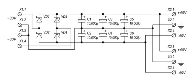 В моем случае в таком варианте будет возможен только один стаб на оба канала... (насколько я понял разъяснения Nick-а) И я так понял, этот вариант хуже, чем один диодный мост и отдельные стабы на каналы.
