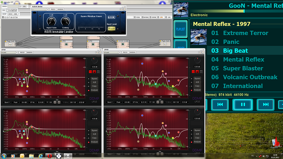 Как вы уже в курсе, своим спинномозговым отростком под названием "голова" я на днях додумался, что для нивелирования комнатных резонансов (стоячих волн) вместо эквалайзера аппаратного -- можно в испытательных целях применить эквалайзер программный. /Заметьте: десятки раз слушал саб NB, десятки раз мысленно содрогался от перспективы _паять_ эквалайзер -- и лишь год спустя _САМ_ :) додумался о софтовом регулировании./