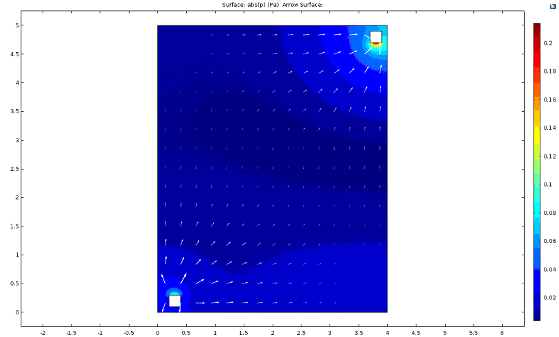 Показано поле векторов интенсивностей в плоскости излучателя и ловушки на частоте 80 Гц.