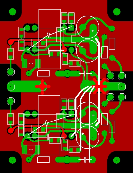 Так что картинка разводки ПП 12шт 5534 выложенная мной ранее абсолютно жизнеспособна, 5534 обкатывалась без кондёров в ООС второго каскада и никаких проблем.