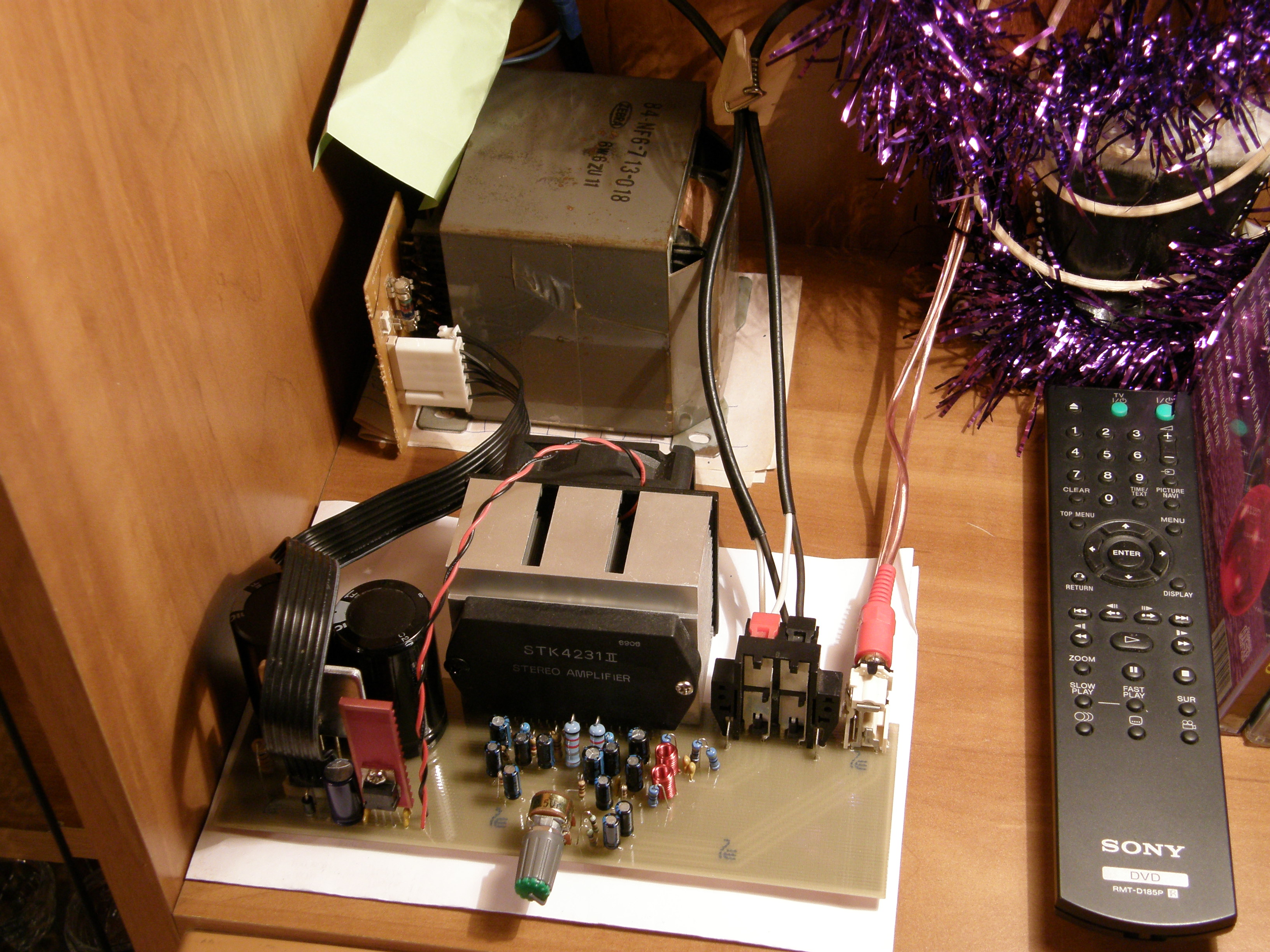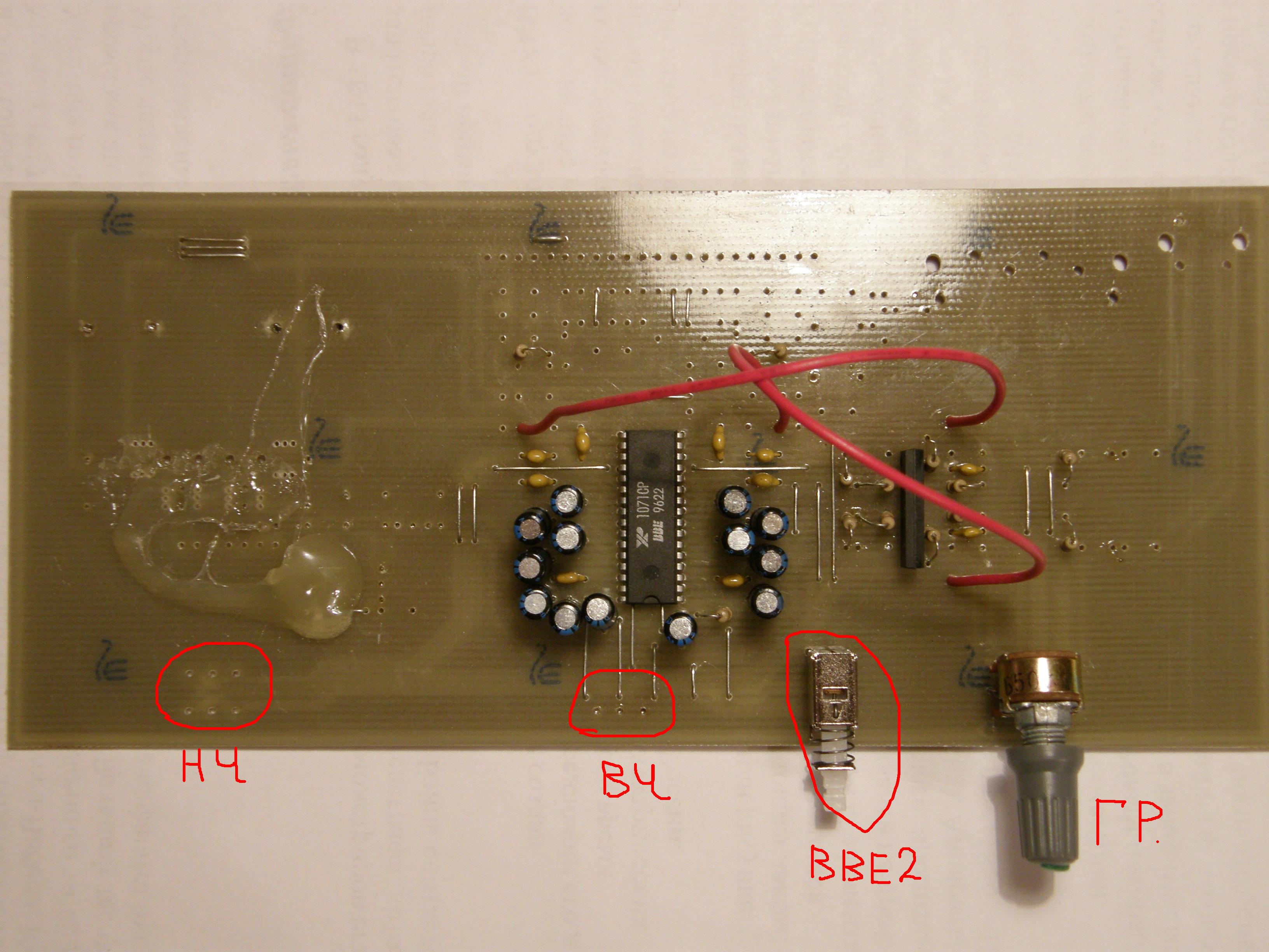 ID:	144661все микросхемы и разъёмы взяты с родной платы AIWA NSX999MK2 остальная обвязка куплена в магазине. Восьмая нога (MUTE) посажена на землю также как на родной плате. данный образец имел плавную регулировку подъёма низких и высоких частот с включенным BBE, при включении/выключении плюмкал динамиками(из за однополярного питания аудиопроцессора BBE и предусилителя) что решилось введением отдельного тумблера подачи питания на STK. Звучал очень даже неплохо но с вон теми красными перемычками он зазвучал намного лучше, потому и был сделан номер второй.