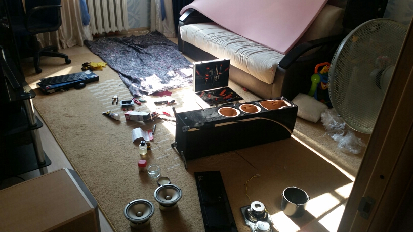 Сейчас приклею ватин к задней стенки верней камеры и будем тестить выкладывайте треки, можно из ютуб. послушаю выскажу свое скромное мнение. я кстати еще решил перегородку нижнюю поролоновую не ставить на место, ватин на пол приклеил обратно.