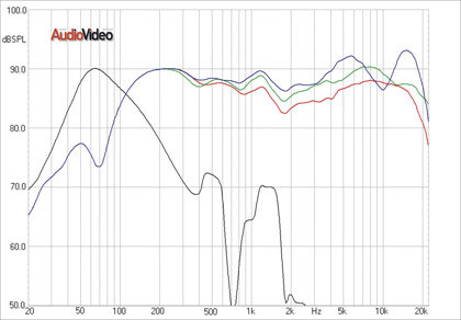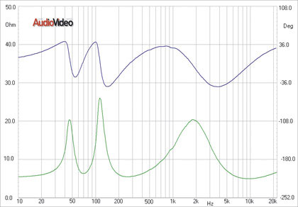 Провал на 10 дБ на средних частотах (объясняется фазовым сдвигом излучений СЧ- и НЧ-драйверов), спад на низких, начиная уже со 100 Гц, хорошо слышны и отмечены многими владельцами 777-х. На АЧХ 333-х с частотой раздела ВЧ и СЧ полос 2400 Гц всё гораздо лучше – характеристика ровная вплоть до 120 Гц. Фазовая характеристика во всем диапазоне частот не выходит за рамки +40/-40 град, что говорит о невысокой реактивной составляющей импеданса.