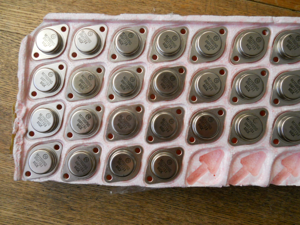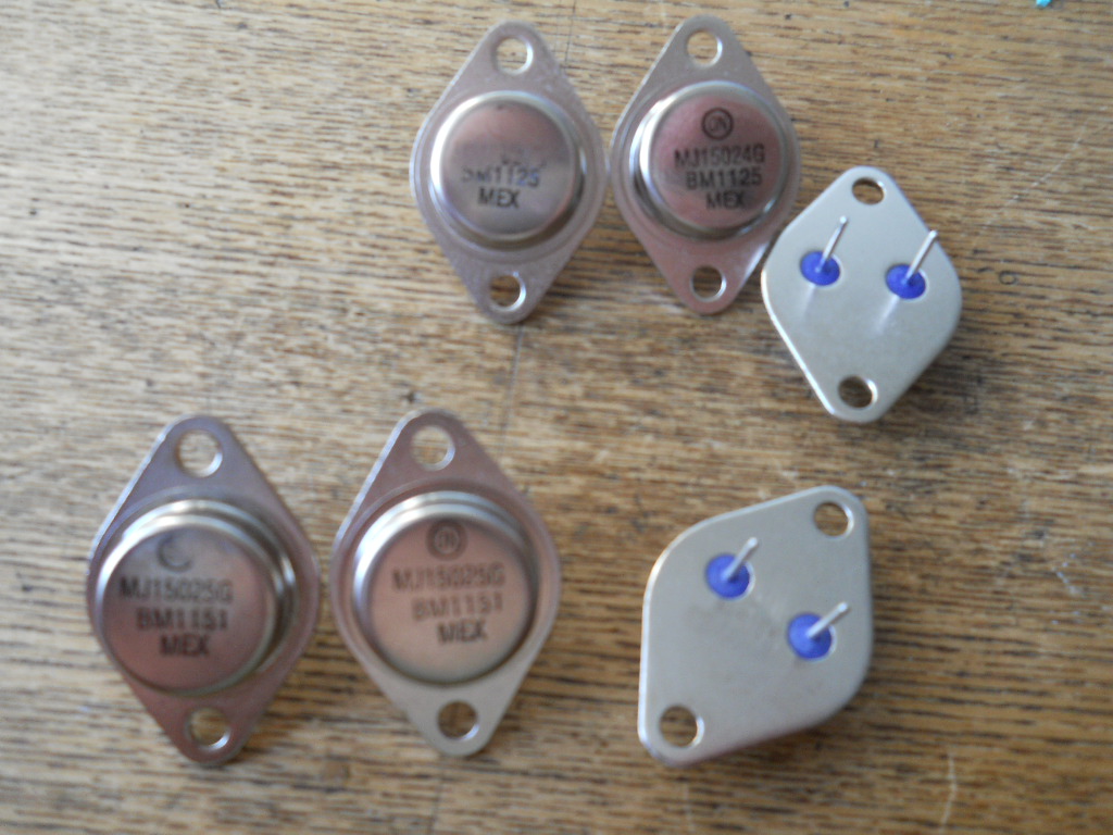 Господа, пришла крупная партий MJ15024G MJ15025G из icshop.ru Вызывают сомнения транзисторы. Маркировка стирается ацетоном. MJ15025G снизу слегка царапаные или шкуреные. Фото прилагаю, заранее благодарен за ваши ответы. Нажмите на изображение для увеличения.