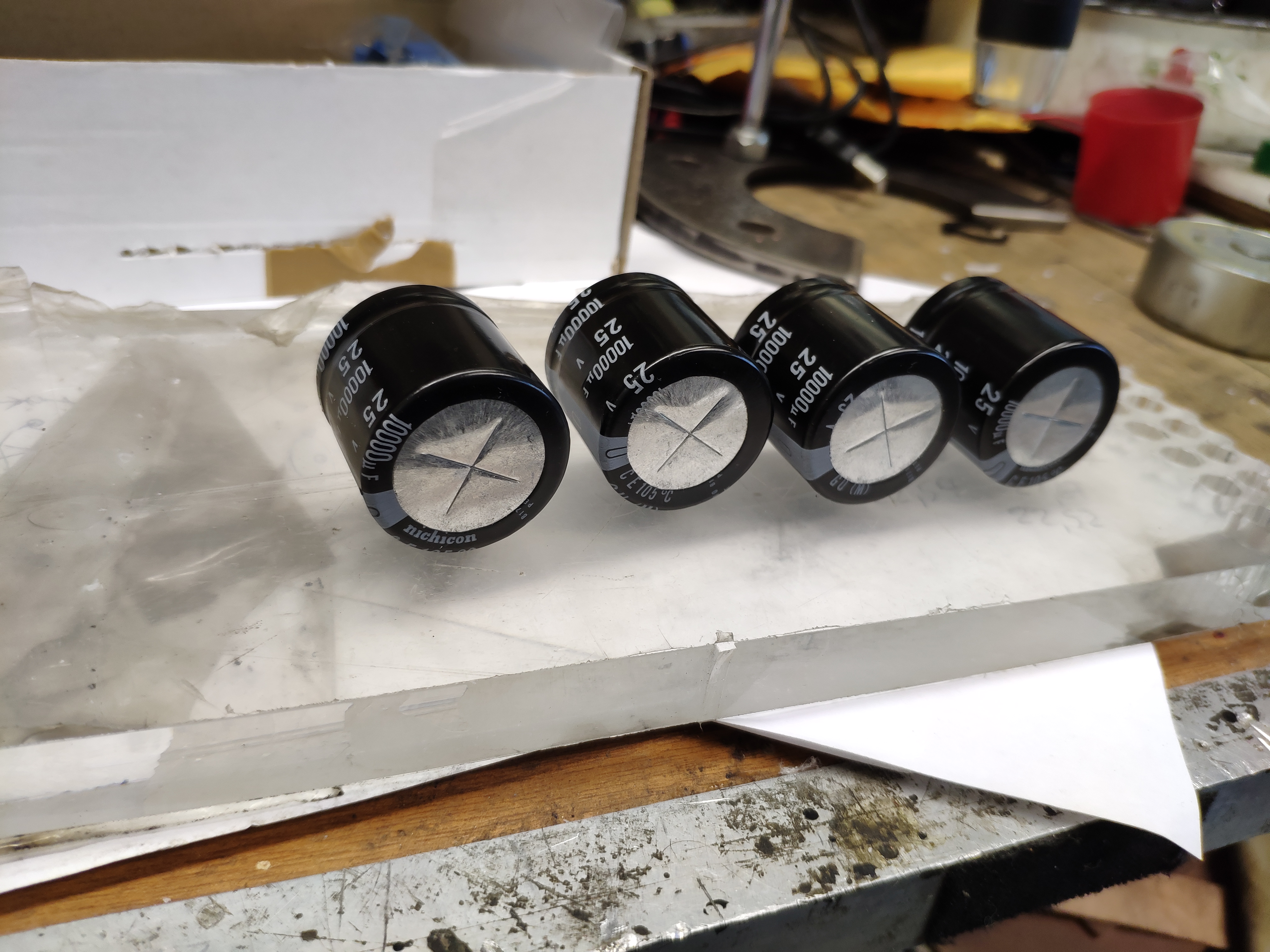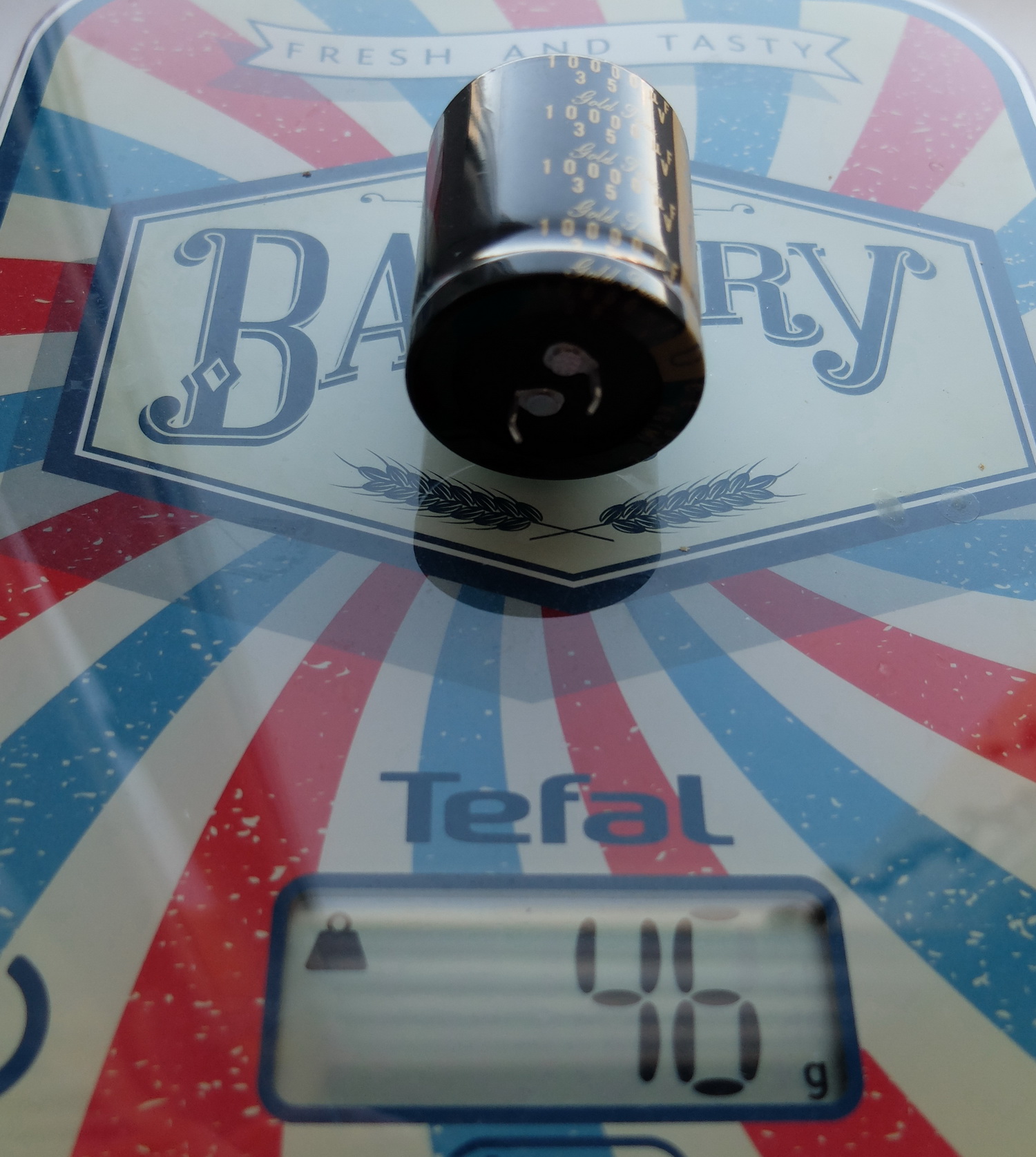 Всем здравствовать! Решил прикупить электролитов для лабораторника (платан). Банки на ровной поверхности скатываются примерно в одно положение; емкость 9300...9700; вес +/- 0,5 г; ножки магнитятся. Смотрел фотку на digikey, вроде похожи. Смущают: Кривоватая полоса минуса и термоусадка с изъянами ну и вес какой-то малый.