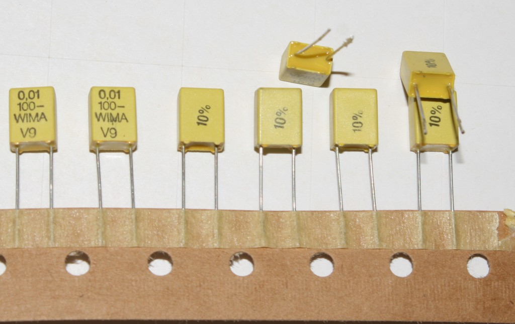 Далеко не факт, что фейк, просто в маркировке старых мелких вимовских конденсаторов фиг разберешься. Возможно, что те, которые якобы фейк, просто вимовский лавсан.