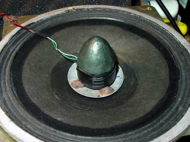 Соорудил пулю из пробки от шампанского и скульптурного пластилина. По оси ВЧ несколько приподнялись, АЧХ под углами стала более равномерной (уменьшилась интерференция). Оставляем. Отслушиваем. На СЧ особых изменений не заметил.