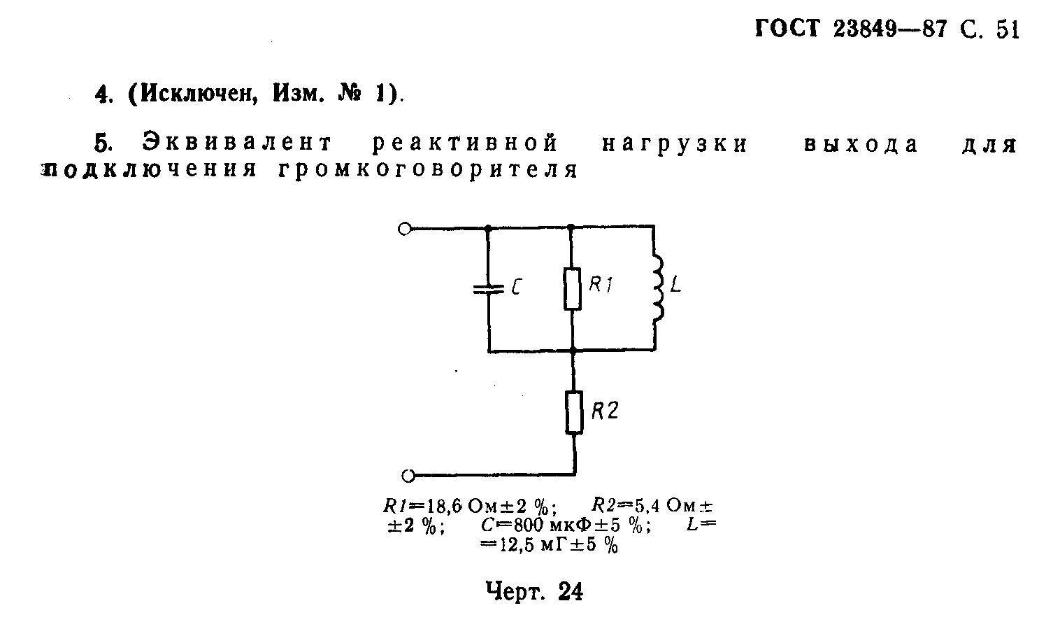 Задался идеей создать эквивалент нагрузки АС для измерения параметров УМЗЧ. Проведя поиск на форуме пришел к выводу, что кто как хочет, тот так и нагружает))). Недолго полазив, нашел первоисточник с рекомендуемой схемой нагрузки (ГОСТ 23849-87). Возникли два вопроса: