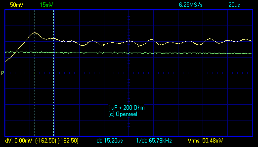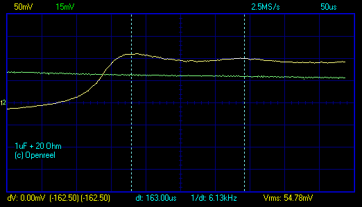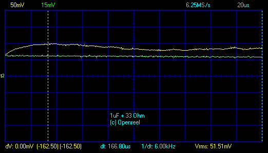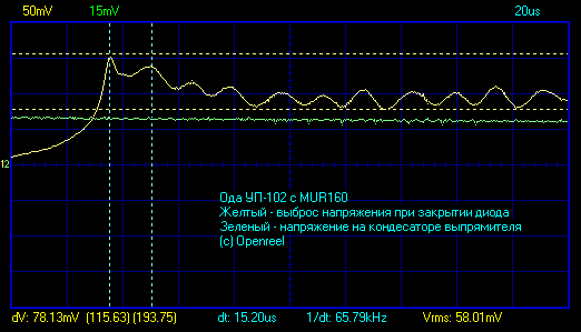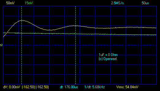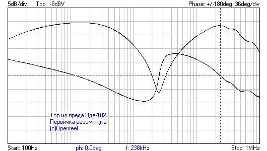 Частота получилась 2,8 кГц. Начал считать по формуле F = 1/2*Pi*(LC)0.5. Но результат получился весьма странный - порядка 1 мкФ.Для это необходим генератор синусоидальных колебаний и осциллограф. Подключая обмотку последовательно с резистором к выходу генератора, контролируем напряжение на обмотке. Самая низкая частота, на которой осциллограф покажет максимум напряжения и будет собственной частотой обмотки. Используя формулу и зная индуктивность обмотки, легко вычислить эквивалентную емкость.