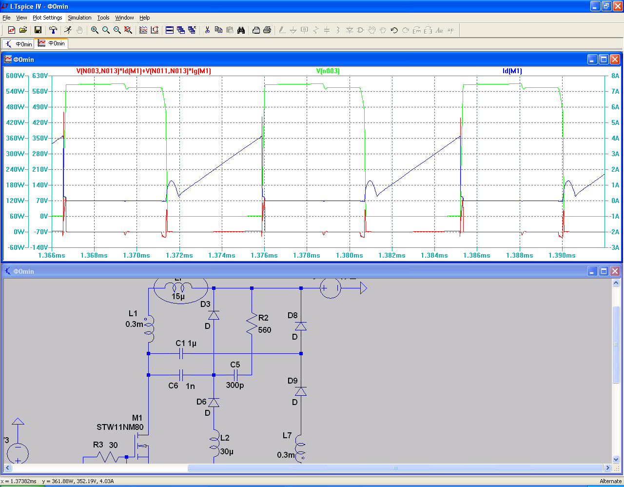 Для моделирования метода городить синхронный выпрямитель с задержкой выключения не хотелось, поэтому поставил медленный диод в выпрямитель. В жизни так заряд в диоде не накапливается! такой суррогат - только для демонстрации метода:
