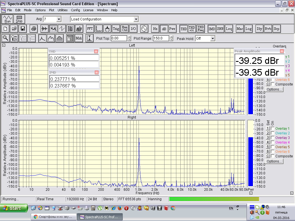 Да просто мерилка включена постоянно, я не вникал но имд там не совсем корректно смотриться. Тема к тому что зачем ныне собирать железные генераторы для изиериловки. Телефон довольно неплохо генерируеи и никаких составляющих сети. Промерил выходы хуавей самый слабый 160мв, но самый качественный звук, сони около 280, самсунг 350 но качество слабенькое. Кстати карте EMU1212 по качеству уступают не сильно где то в 2-3 раза при тех же 0,00.. , но чище. Наконецто под андроид попалась удобная и адекватная программка гена. Даже меандр генерирует похоже