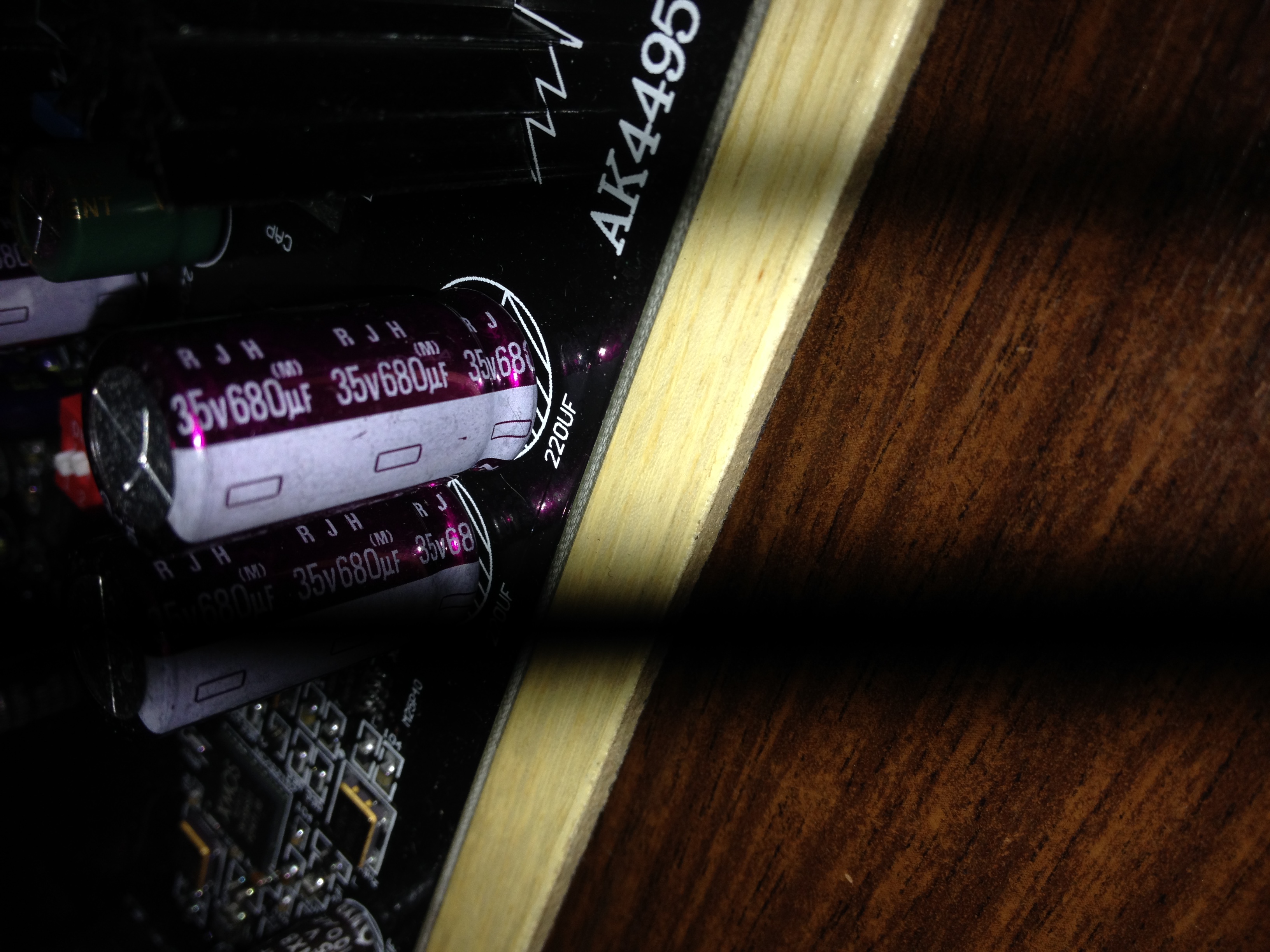 Осцилоскопом это творение ощупано? Или как обычно всё на слух делается? по моему опыту в китае криво всё - питание(возбуд стабов), спдиф(пленка как разделительные кондеры, пленка на цифровых мелкосхемах), выхлоп(идиотские номиналы, нагрузка выхода ОУ для "перевода в класс А"). Просто всё, всё нужно проверять на отсутствие возбудов и проникновения вч с цифры в аналог.