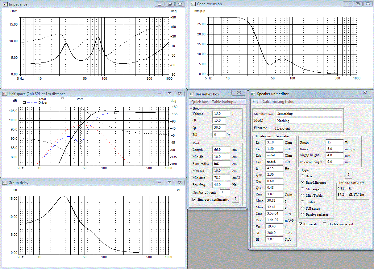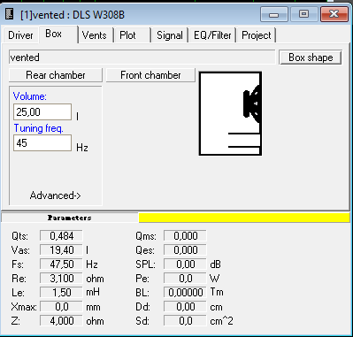 А смотреть надо на ГВЗ, смещение при макс. интересующей мощности, АЧХ при этой мощности, которая(ачх) зависит от мощности и площади порта (в нормальных калькуляторах), причем еще прикинуть частоты стоячих волн в комнате/авто, чтоб настройка порта не попала в одну из них.