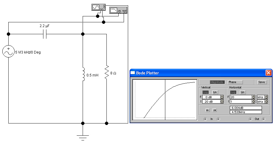 Посмотри, как EWB видит твои фильтры. Особо обрати внимание на фильтр СЧ головки. Эти картинки близки к истине, хоть не учитывают индуктивность динамиков (но её, имхо, и нельзя учитывать напрямую, поскольку от неё при работе идёт отбор энергии). Они могут помочь тебе понять причину своеобразного звука на средних частотах. Ещё обрати внимание на влияние RC-цепочки на ход АЧХ НЧ динамика. При её наличии, нельзя считать порядок этого фильтра первым. Также полюбопытствуй, как работает твой режектор, настроенный на 7 кГц.
