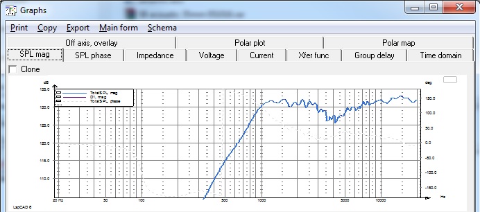 Т.е. если измерять АЧХ по импульсу с коротким окном (буквально несколько мс), то АЧХ будет более-менее совпадать с полученной в ближнем поле, но вот при использовании длинного окна (10мс и более) отраженные импусьсы будут давать создавать подъем в измеряемой АЧХ. Поскольку амплитуда отражений от стен меняется падает с частотой, то на ВЧ в дальнем поле всё так же наблюдается лишь прямой сигнал, в то время как на СЧ наблюдается подъем вплоть до 10дБ. У меня, например, получилось вот так: