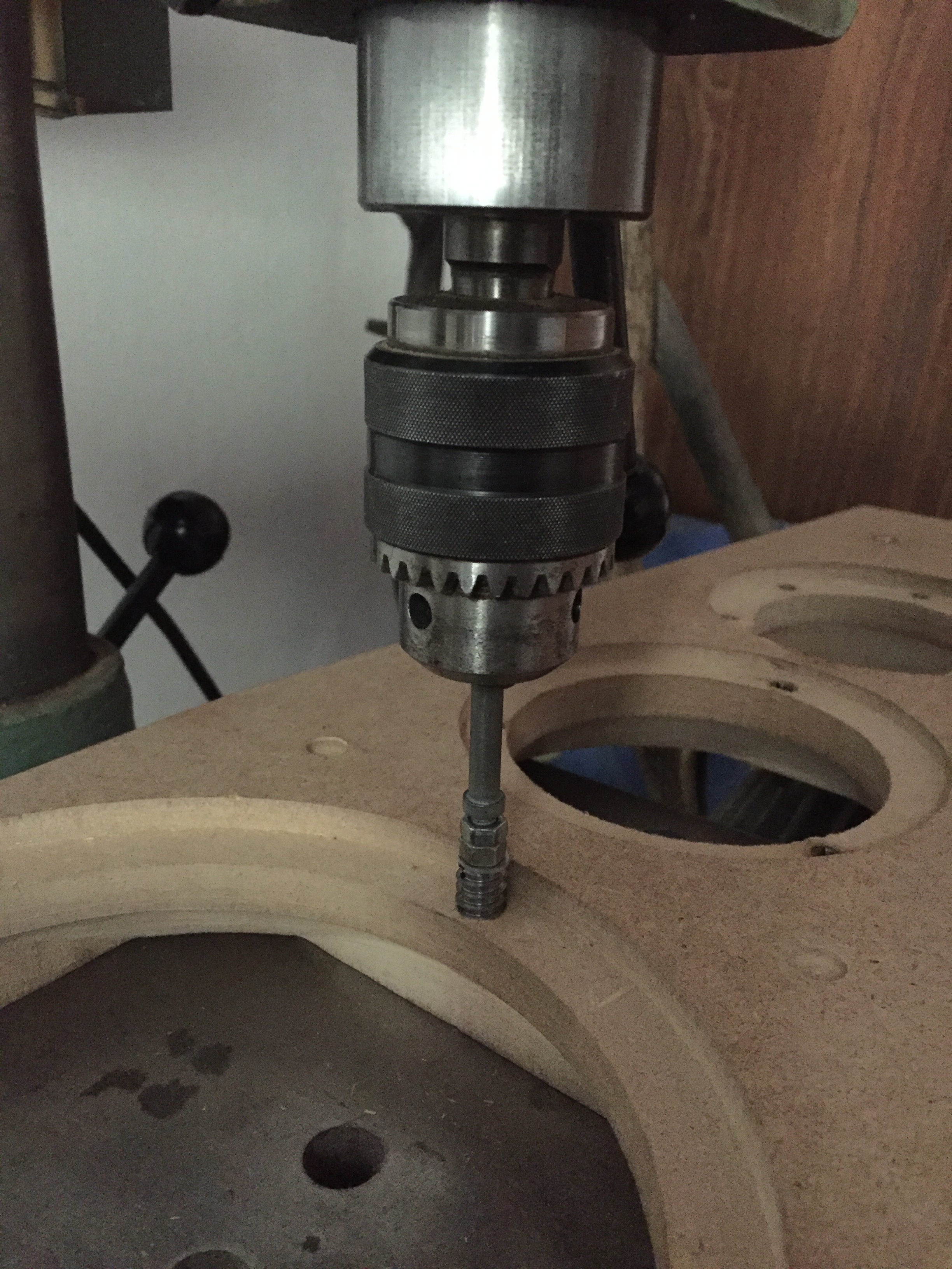 На лицевой панели предусмотрел углубления для установки в них неодимовых магнитов для крепления грилей. Для крепления кроссов в боковых панелях предусмотрел установку металлических мебельных футорок м4. Крепление динамиков также решил делать болтами через установленные в мдф футорки. Те же футорки только М6 использовал для крепления нижней опорной плиты к корпусу колонки.