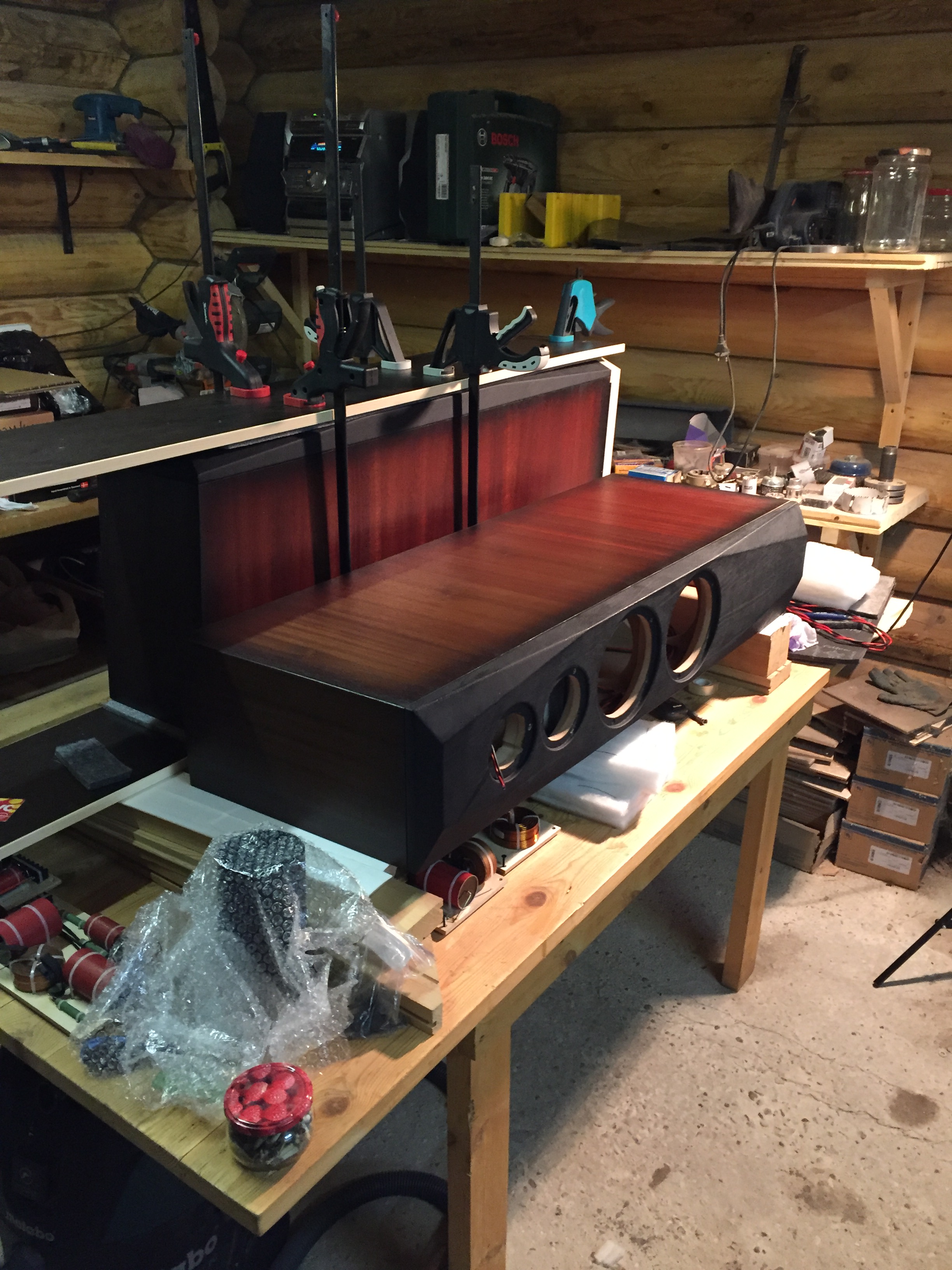 Дабы не лезть в чужие ветки создам все таки свою. Никогда не задумывался о сборке своих колонок. Так получилось, что прошлым летом у меня умер отец. То крайне скромное наследство, которое получил, начало попросту расходится на бытовые нужды и я понял, что сейчас его просто разбазарю и в память об отце толком ничего не останется. Поскольку он у меня любил музыку и всегда хотел себе взять что-то хорошее, но как-то всегда было не до этого. Когда он приходил ко мне в офис, где я оборудовал любительскую студию и слушал музыка, он всегда загорался и говорил, чтобы я что-то ему подобрал . Я решил, что надо надо купить колонки домой, которые напоминали бы мне о нем. Сначала решил купить что-то заводское. Походил по магазинам, проехался по объявлениям на авито в радиусе 400км от города. Ничего, чтобы мне понравилось и стоило адекватных денег не нашел. А то что нравилось уходило ценником за 300. Пришел к товарищу, который сделал проект полочников от Троелза себестоимостью в 40тр (правда до скачков курсов) и я офигел. Они реально играли на 150 как минимум (если новые). И меня товарищ направил в сторону Ekta Grande. Прочитал все что можно было об этом проекте. Списался и созвонился с теми, кто уже реализовывал данный проект и сделал вывод, что проект действительно стоящий. Решил делать все в соответствии с проектом (хотя незначительные отклонения я все таки допустил). Замучил Троелза вопросами, нашел у него пару не точностей. Заказал компоненты. Долго думал и читал, заказывать ли детали на фильтры по спецификации или сэкономить. Заказал в результате все по спецификации. Сам являюсь проектировщиком, поэтому накидать модель в Solid Works не составило труда. Так как корпуса решил делать сам не имея опыта, решил отказаться от идеи скругленных корпусов и делать прямые. Стыковку панелей между собой предусмотрел под углом 45гр. Внутренние ребра утопил в боковые и заднюю панели.