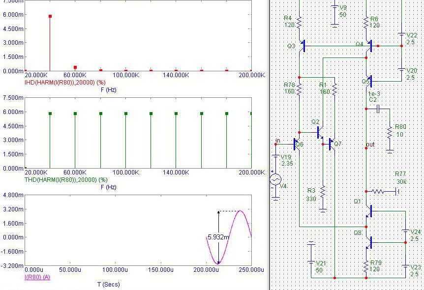 Если решить проблему модуляций Vbe ОБ (ну ты помнишь, как я это нарисовал - диффкаскад и сделать ее синфазной!) - получится неплохо.