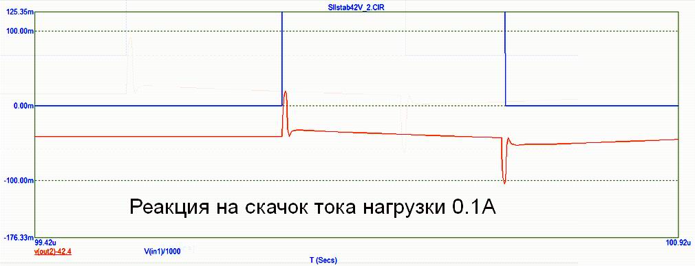 belka, да, в симуляторе гуляет. Но если настроить на номинальную нагрузку, то при изменении нагрузки на +- 100 процентов, выходное сопротивление не превышает 0,01 Ом.