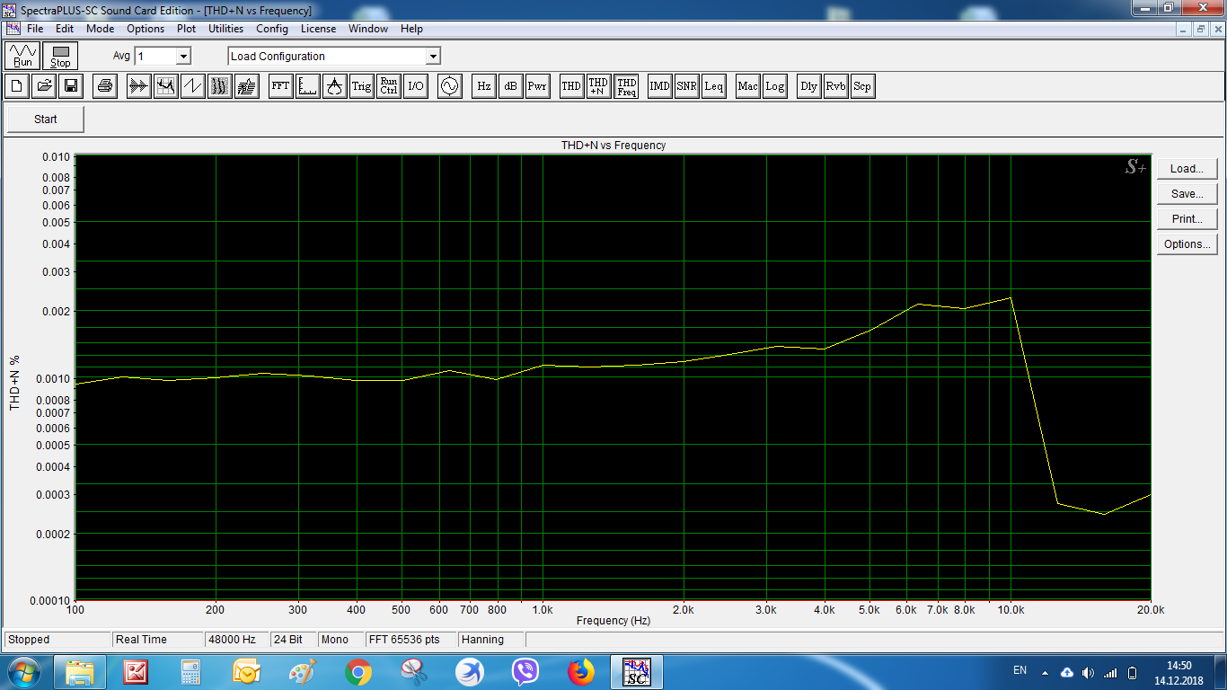 Измерения проводились на нагрузке 4,3 Ом, при питании усилителя от лабораторного блока питания 13,5В.