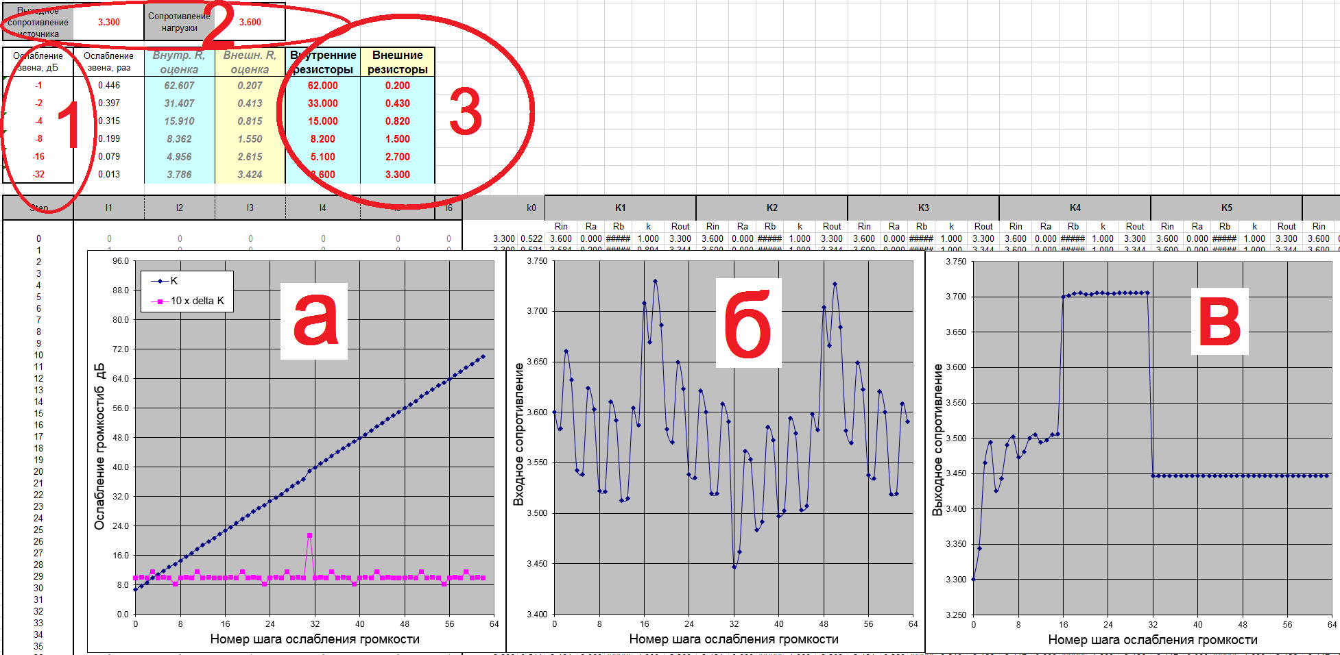 Выходное сопротивление соответствующего лестничного регулятора с шагом 1.5 дБ - от 15 Ом до 1.7 кОм