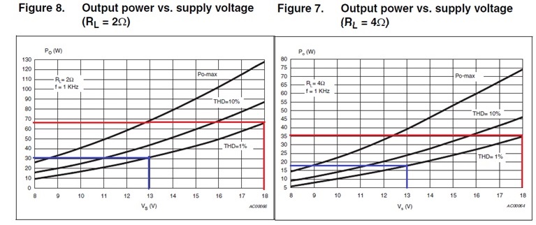 На TDA 7850 подано напряжение 18 Вольт и ситуация, в целом, вышла довольно неплохая по мощности без внешних усилителей.