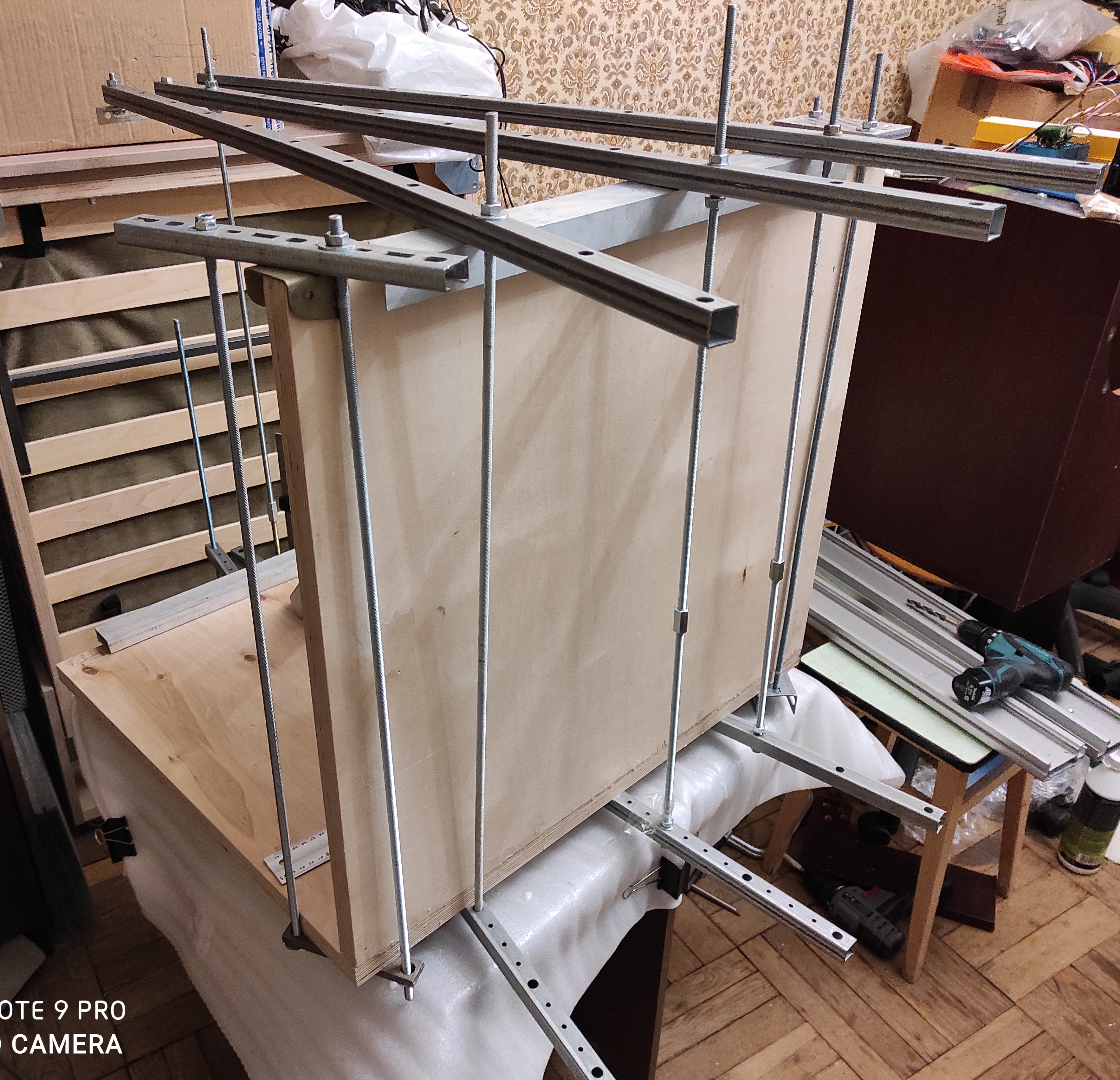 Шканты -- сугубо для столика. Чтобы не так просто сложить ноги. Надо было еще остальных 2 борта напилить. У меня есть из чего и чем, но лень. Если расшатаются, тогда добавлю периметр невысокий на оставшиеся стороны.