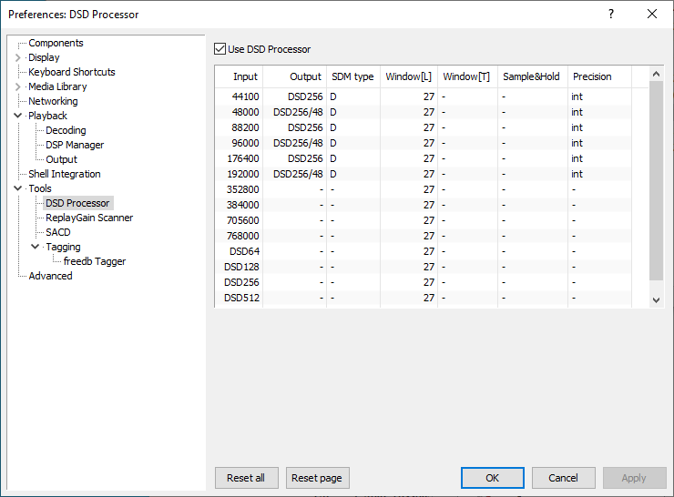 4. Распознавание DoP формата и вывод из него стерео DSD-битстрима частотой до DSD256 включительно.