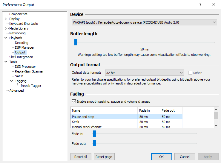 1. Вывод стандартного стерео: 32bit 768kHz (Правда драйвер не отображает частоты выше 384к, но по факту 768к выводит). И сам модуль I2S пика позволяет выводить данные с частотой не выше 384к. 768к вывести тоже можно, но каким-то нестандартным интерфейсом, типа QSPI или параллельным портом.