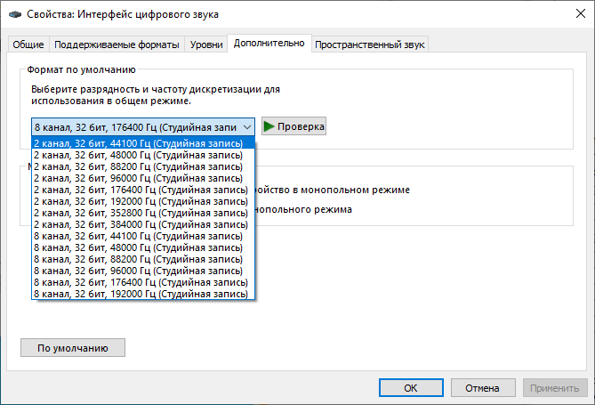 3. Стерео вход: 32bit 768kHz (опробовал по факту только 192, т.к. мой АЦП больше не выдает).