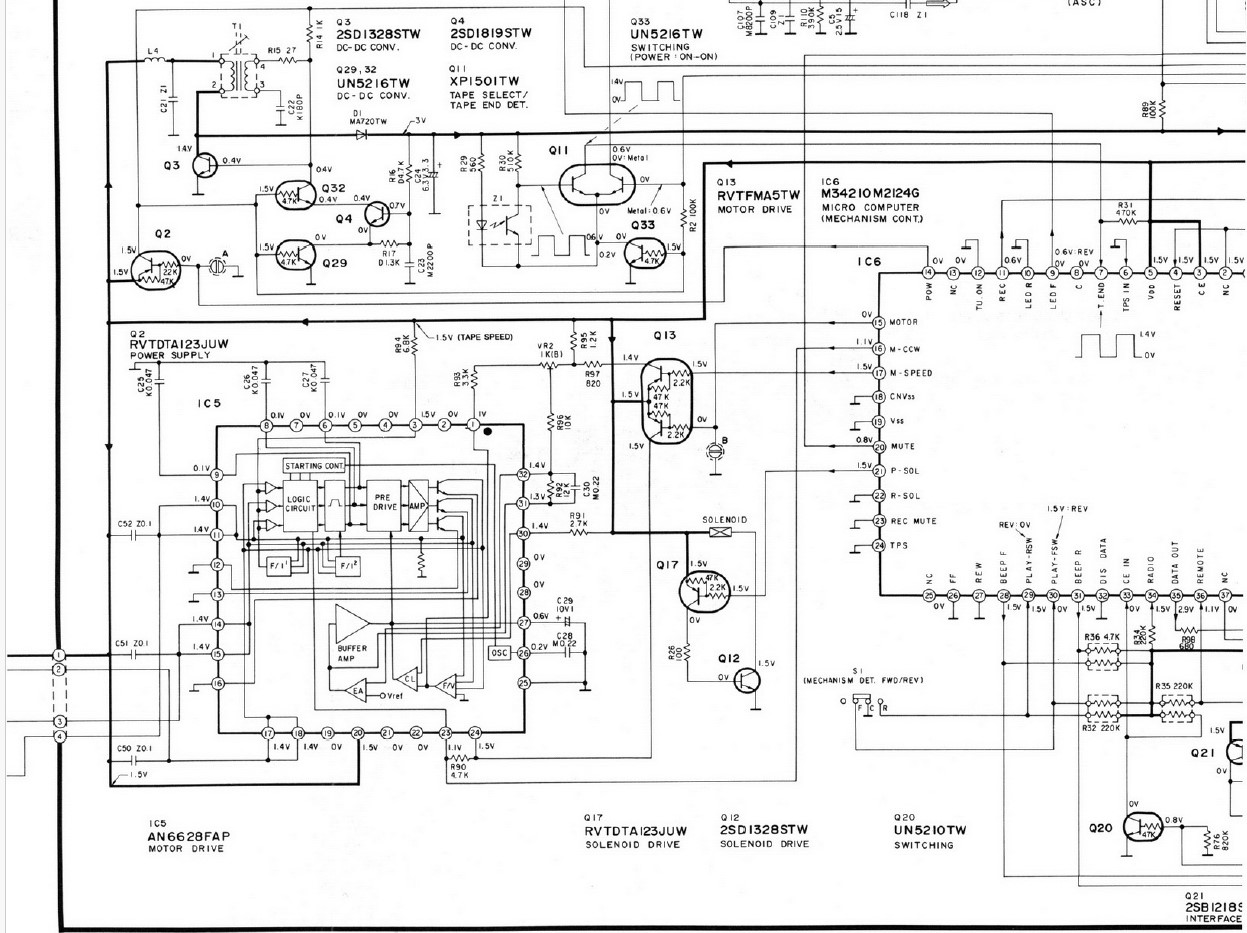 PS: Проблема оказалась механического характера: согнут штифт посадки прижимного ролика хода вперед. Рама головки литая из алюминиевого сплава (не магнитится) и в нее впрессован этот стальной штифт. Пружина постоянно напряжена и тянет штифт к заднему основанию рамы. Буду как то и чем то клеить железяки. Другого варианта не вижу.
