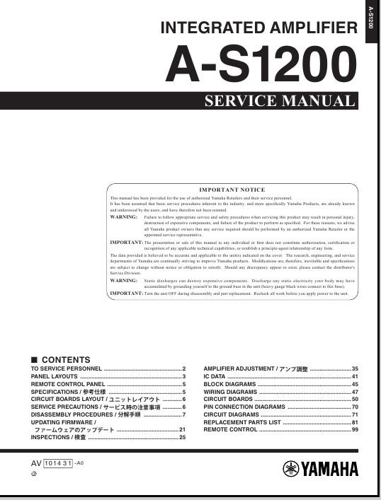 Тема: Ищется мануал серв. YAMAHA A-S1200