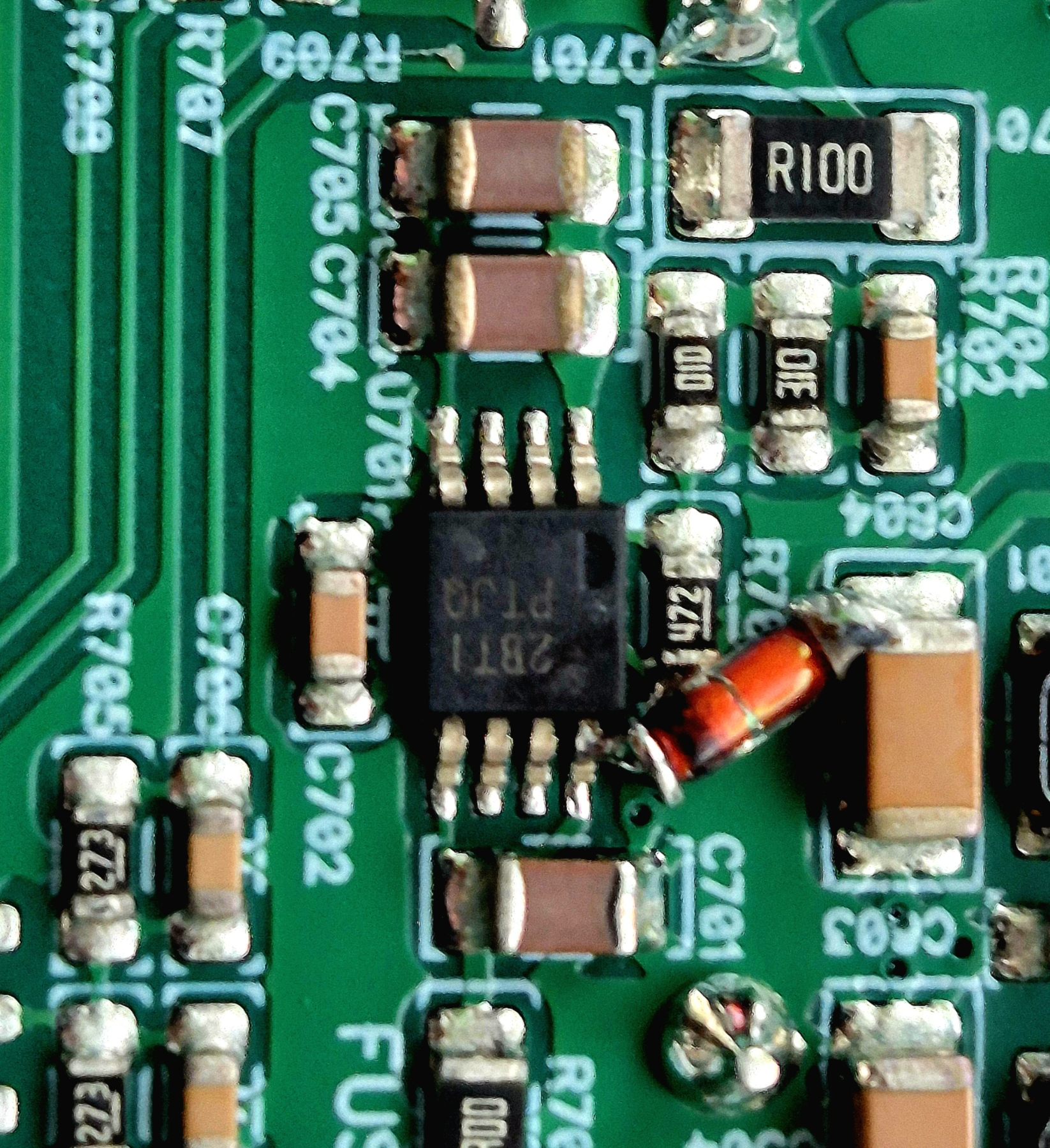 Так же на верхнюю сторону выведен резистор обратной связи преобразователя. Можно без разборки платы увеличить напряжение. И , на всякий случай там же можно добавить дополнительный конденсатор мягкого пуска.