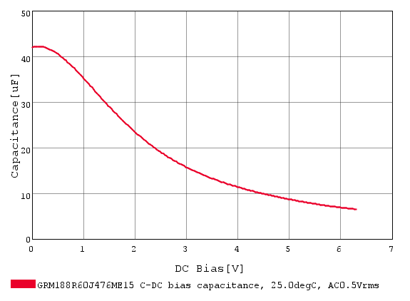 Видно, что при подаче 3,3 в от 47 мкф остается примерно 15. По даташиту рекомендуется 10 мкф.