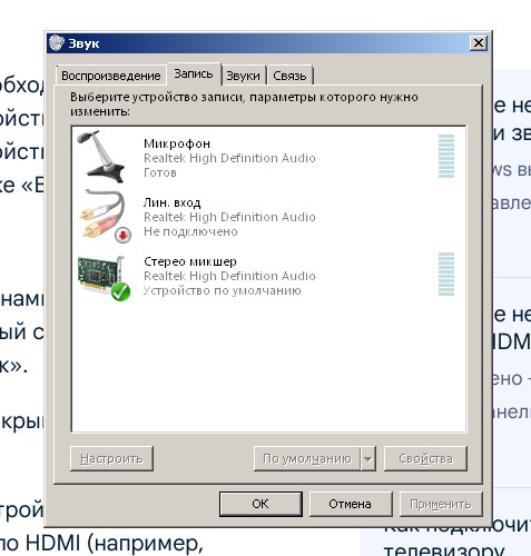 По умолчанию Стереомикшер windows - отсутствует HDMI устройство (не могу захватить звук с видюхи)