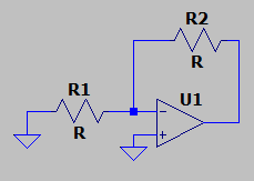 Вернёмся к схеме инвертирующего усилителя. Убёрём со схемы источник напряжения (или что то же самое, будем считать, что он выдаёт нулевое напряжение).