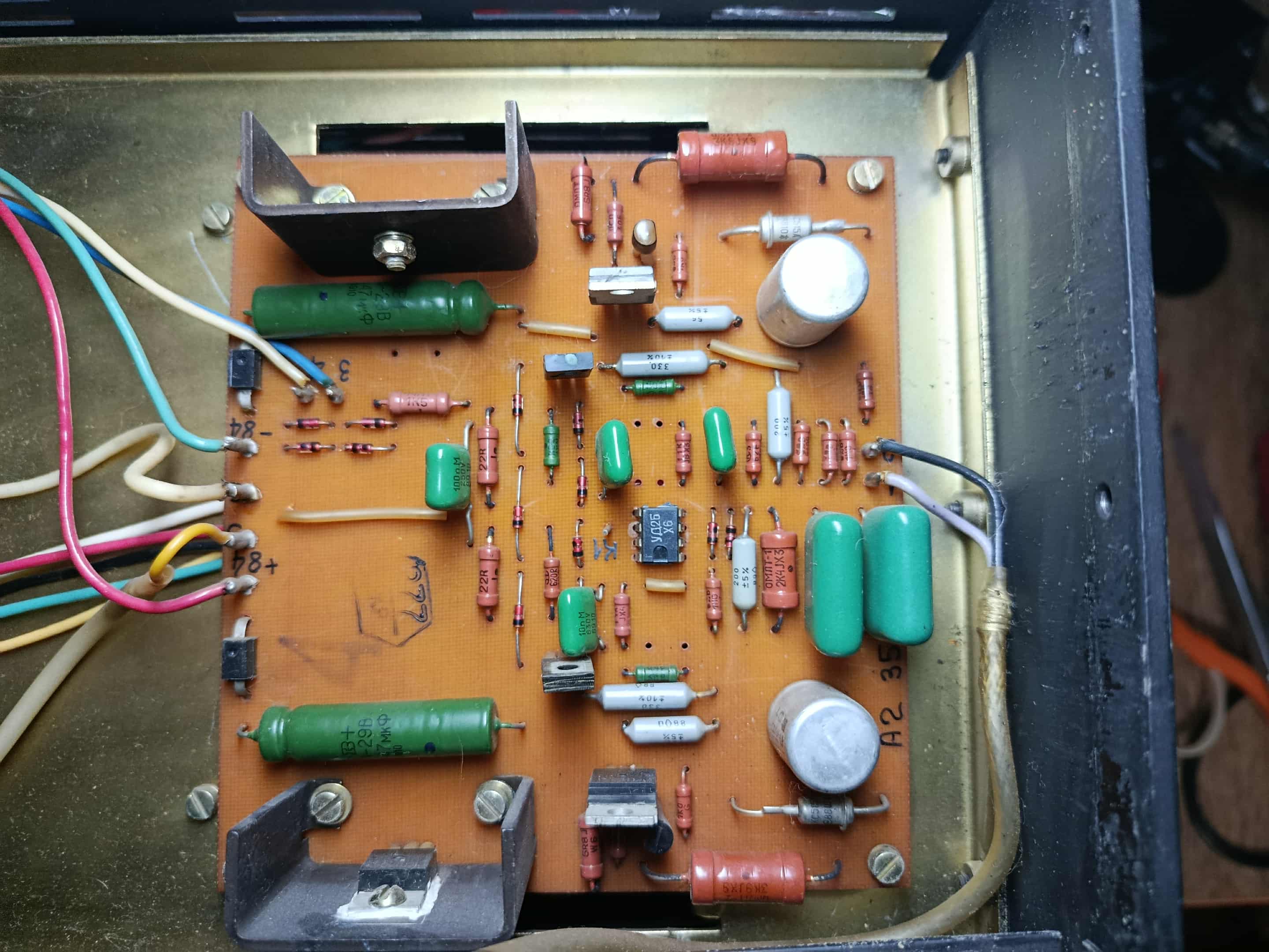 Пока успел сделать только функциональную группу А2, - то, что в "Корвет 200УМ-088С" называется Усилителем Напряжения. Есть замечания (не работающие ограничителем диоды VD1+VD2 , слишком грубый индикатор перегрузки VD14~VD17). Коррекция оставляет желать лучшего, - петлевое усиление на 20kHz не выше 63dB, и то, если изменить заводские номиналы.