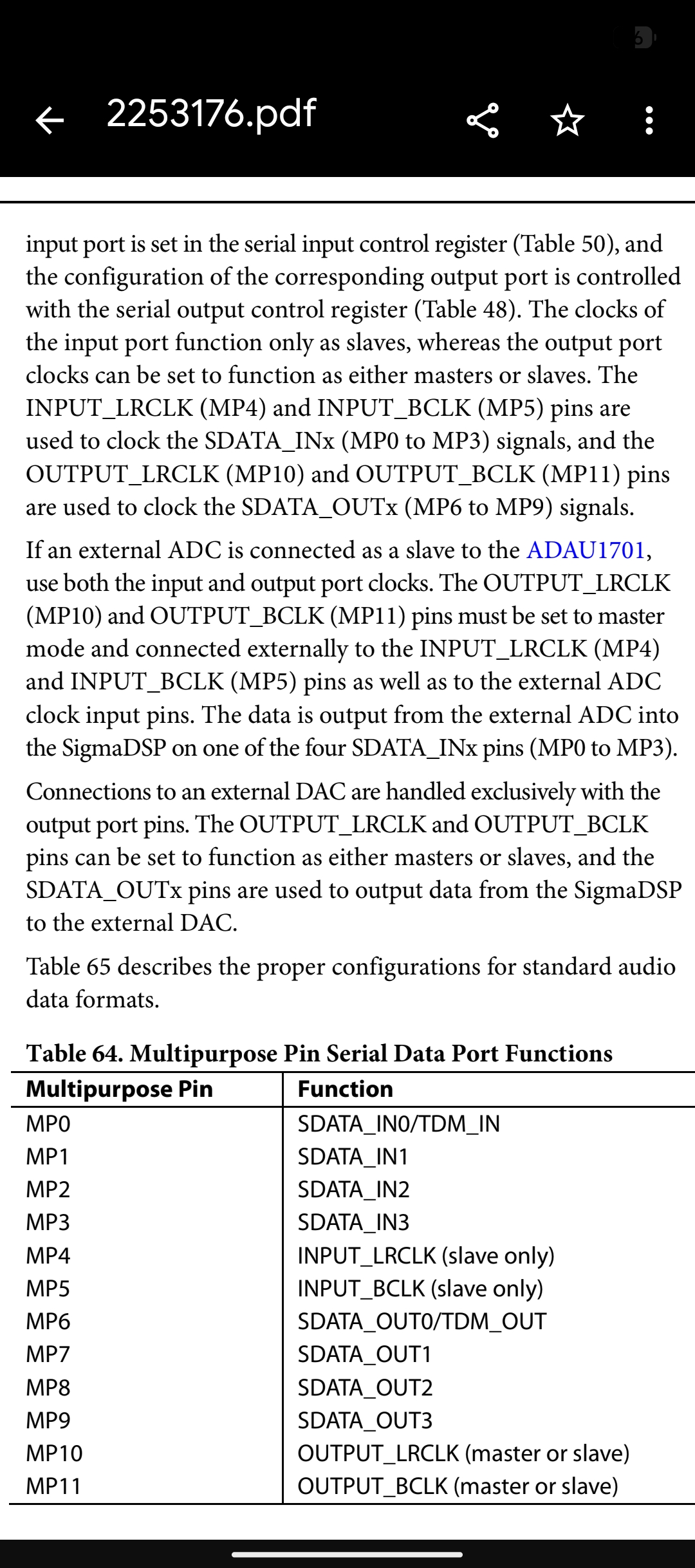 Я правильно понимаю, что у ADAU1701 входы I2S могут работать в режиме мастера и в этом случае внешний мастерклок для 1701 не нужен, он будет работать от своего резонатора?