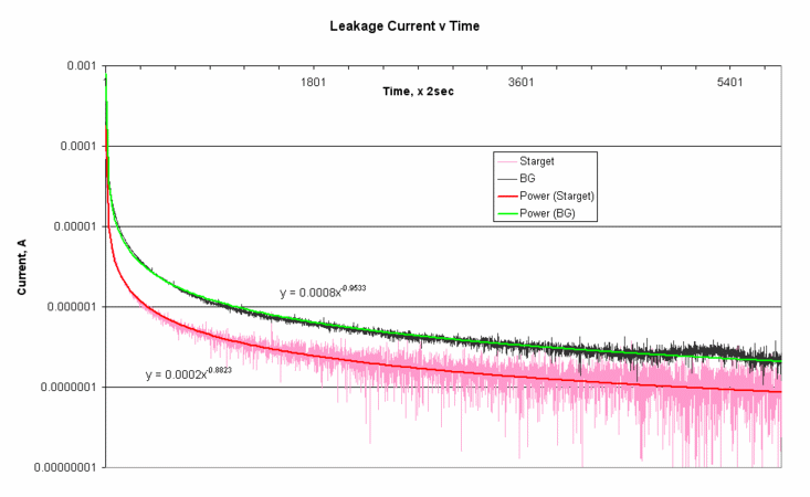 Уже . Проблема в том, что это - медленный процесс и в данный момент "установка" очень временная , поэтому много не обещаю, но вот ещё график с ELNA Starget 1000uF 16V, примерно того же возраста и состояния, что и BG - в сравнении за первые 3 часа с небольшим.