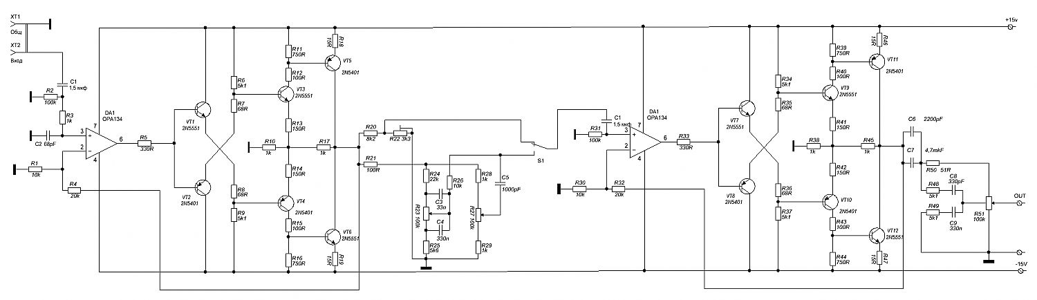 При поднятых НЧ ВЧ коефициент передачи до 9, значит сигнал от CD плеера будет ограничиватся. Входные резисторы не согласованы с резисторами ОС, искажения на ВЧ будут повышены, не смотря на то, какая кучя транзисторов будет на выходе
