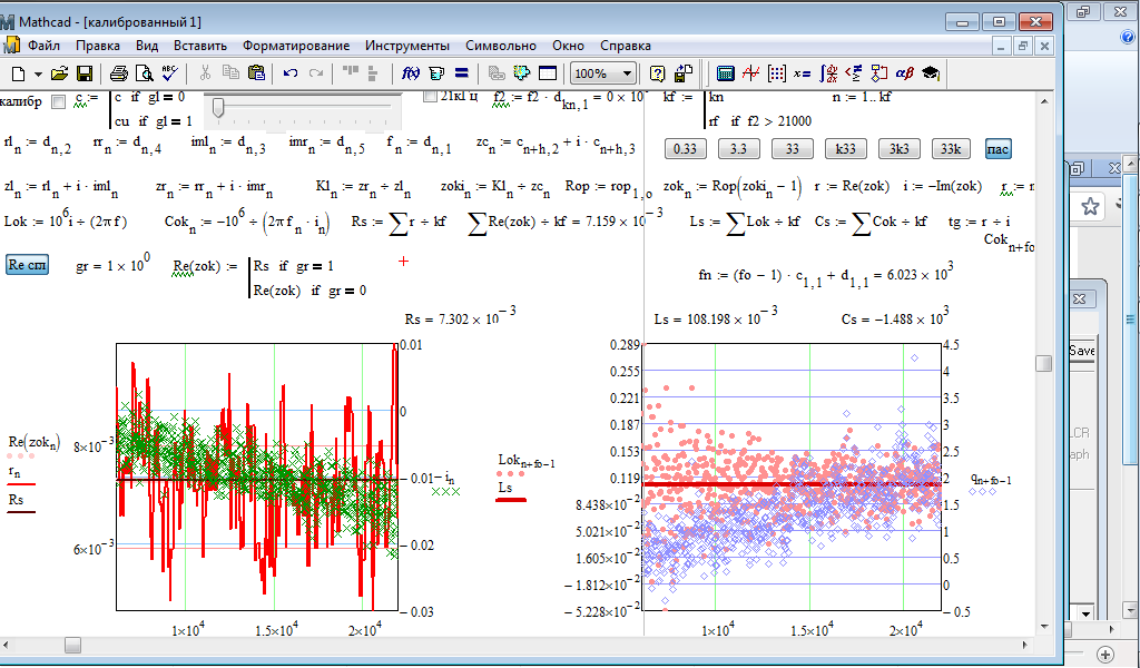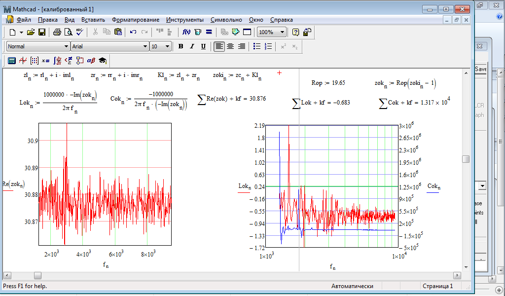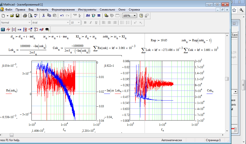 В последних версиях введена логарифмическая шкала сопроитвлений, компенсация паразитных емкостей и сопротивлений ЗК правда для правильной настройки желательно иметь параллельную схему замещения, которая реализована в Маткадовской приблуде Zok5.zip, для компенсации Свх (Сin) подключаем на вход резистор равный опорнику Zm при этом покажет его сопротивление и индуктивность, но это так действует емкость параллельная опорнику, поэтому в Маткаде включаем параллельную сх. зам-я и включаем "-Im", полученную емкость заносим в окно "Cin", делаем измерение на висячих щупах полученную емкость заносим в окно "Clr"