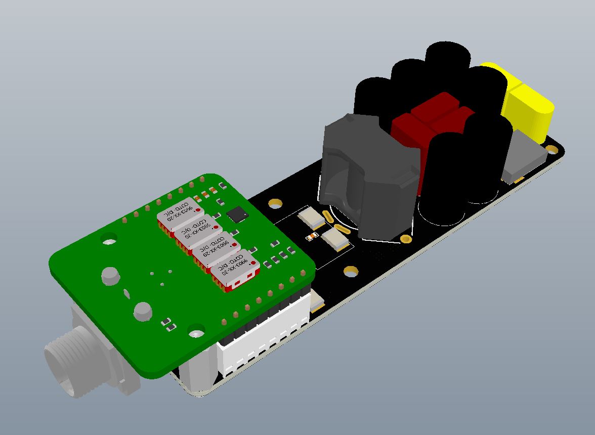 - Hi-End моно-модуль цифрового входа (S/PDIF), содержащий DSP ADAU1452, DAC AK4493 и релейный регулятор громкости