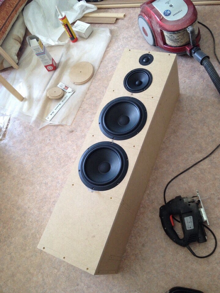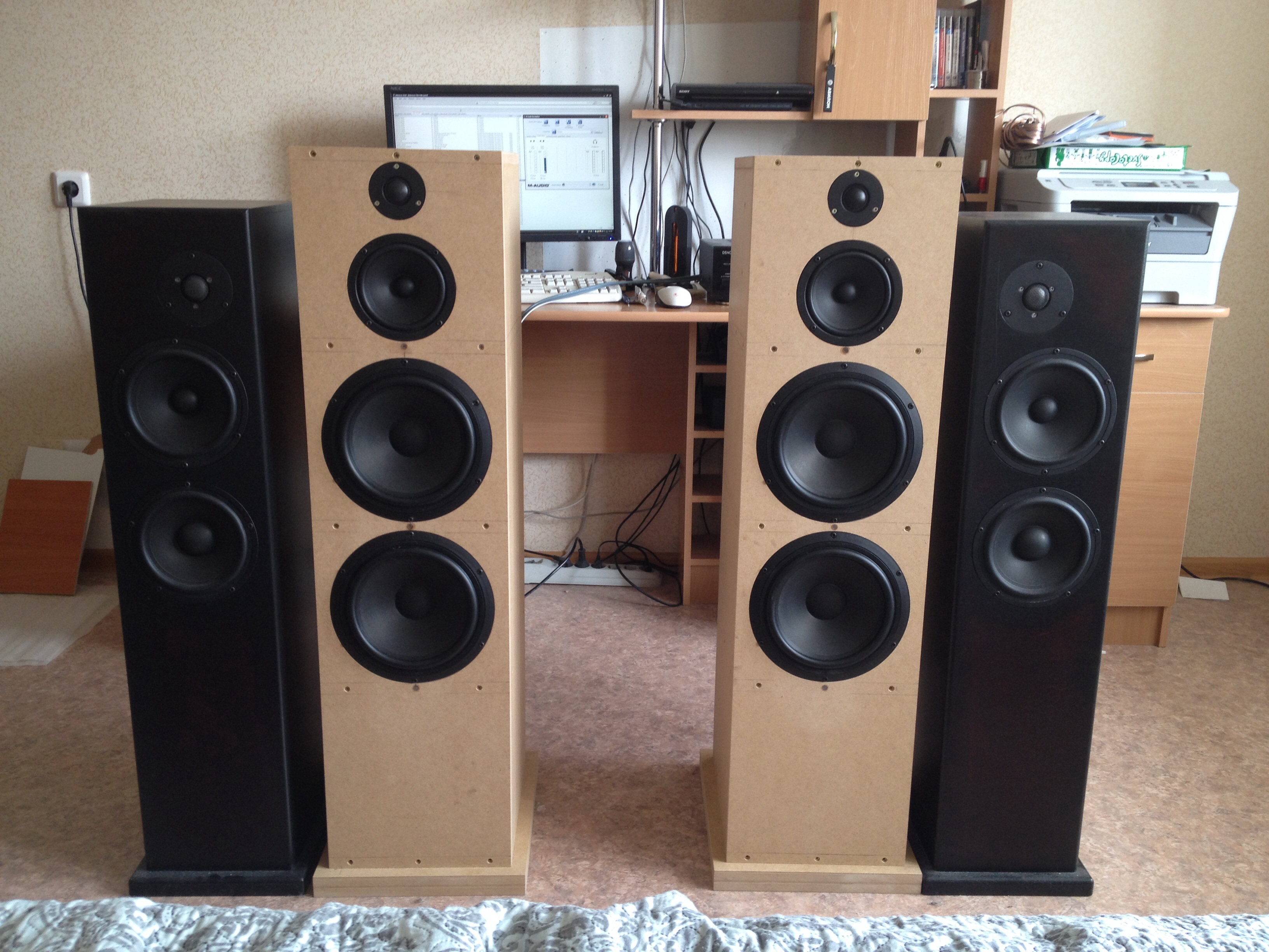 Повторяю проект Алексея на калужских динамиках. Сч-мр1304.8. Остальное все без изменений, фильтр и конструкция все как по чертежам. Послушав около 3х недель решил что нужно заниматься отделкой. Играют очень достойно. С хорошим низкочастотным потенциалом. Сейчас пока замазываю саморезы, врезал врезные гайки под крепление сч и нч. Времени пока мало, поэтому процесс идет медленно. Проект достойный повторения!
