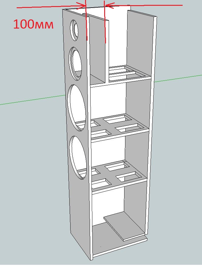 Вопрос по чертежу, перегородка вертикальная для ВЧ и СЧ динамиков, которая размером 228х220, на каком расстоянии от передней стенки она стоит?