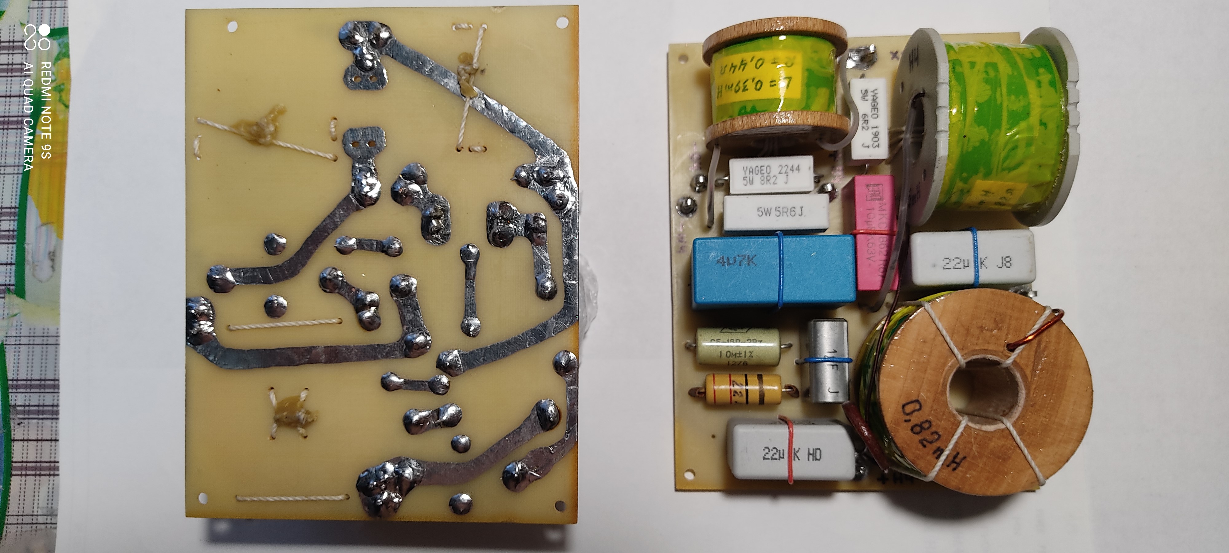 Если платы сделаны из фанеры,то можно крепить детали фильтра припаивая их к таким стойкам,загнутым с обратной стороны платы,для фиксации.Нажмите на изображение для увеличения.