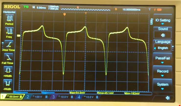 (осциллограмму снимал с резистора через разделительный трансформатор)