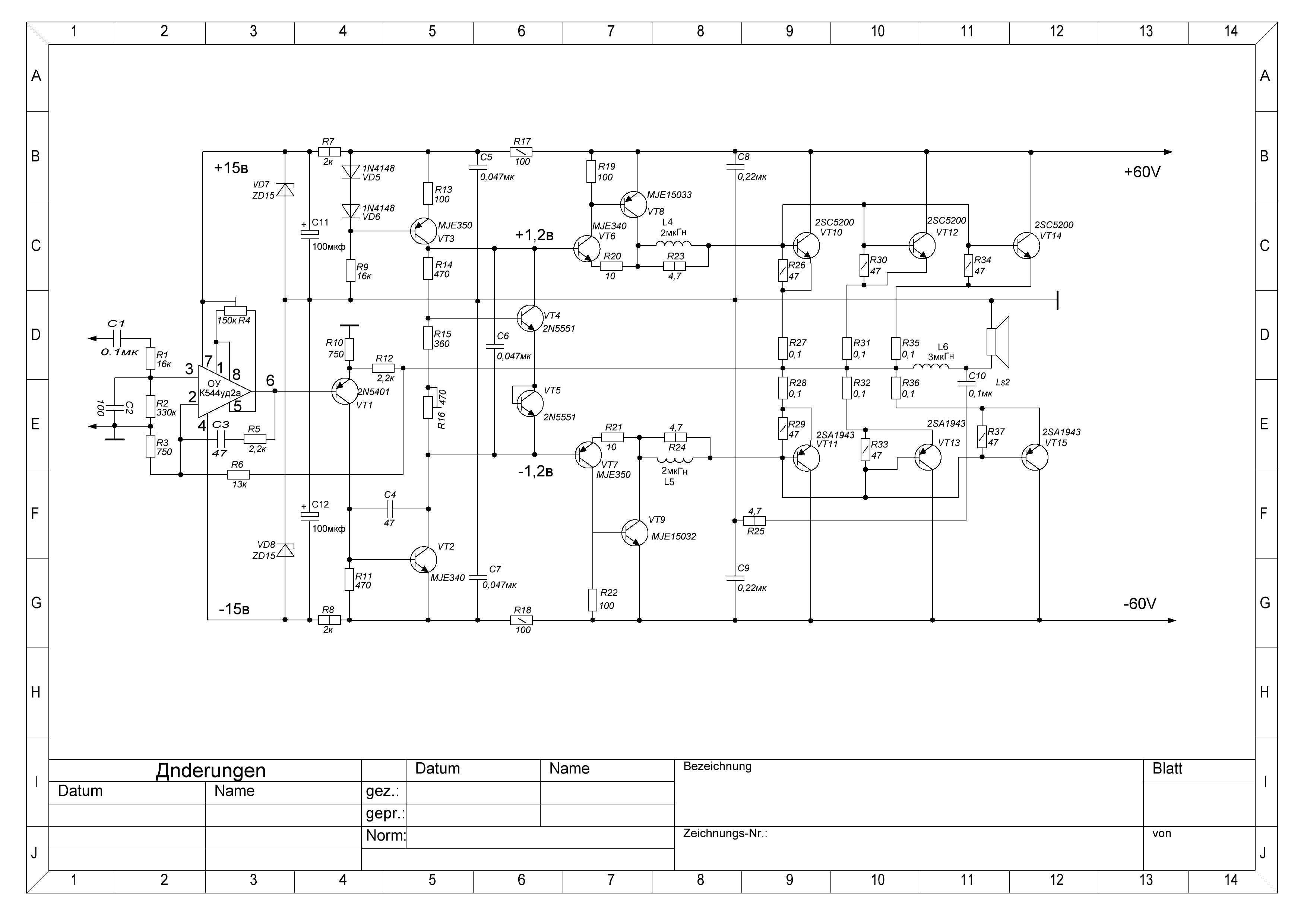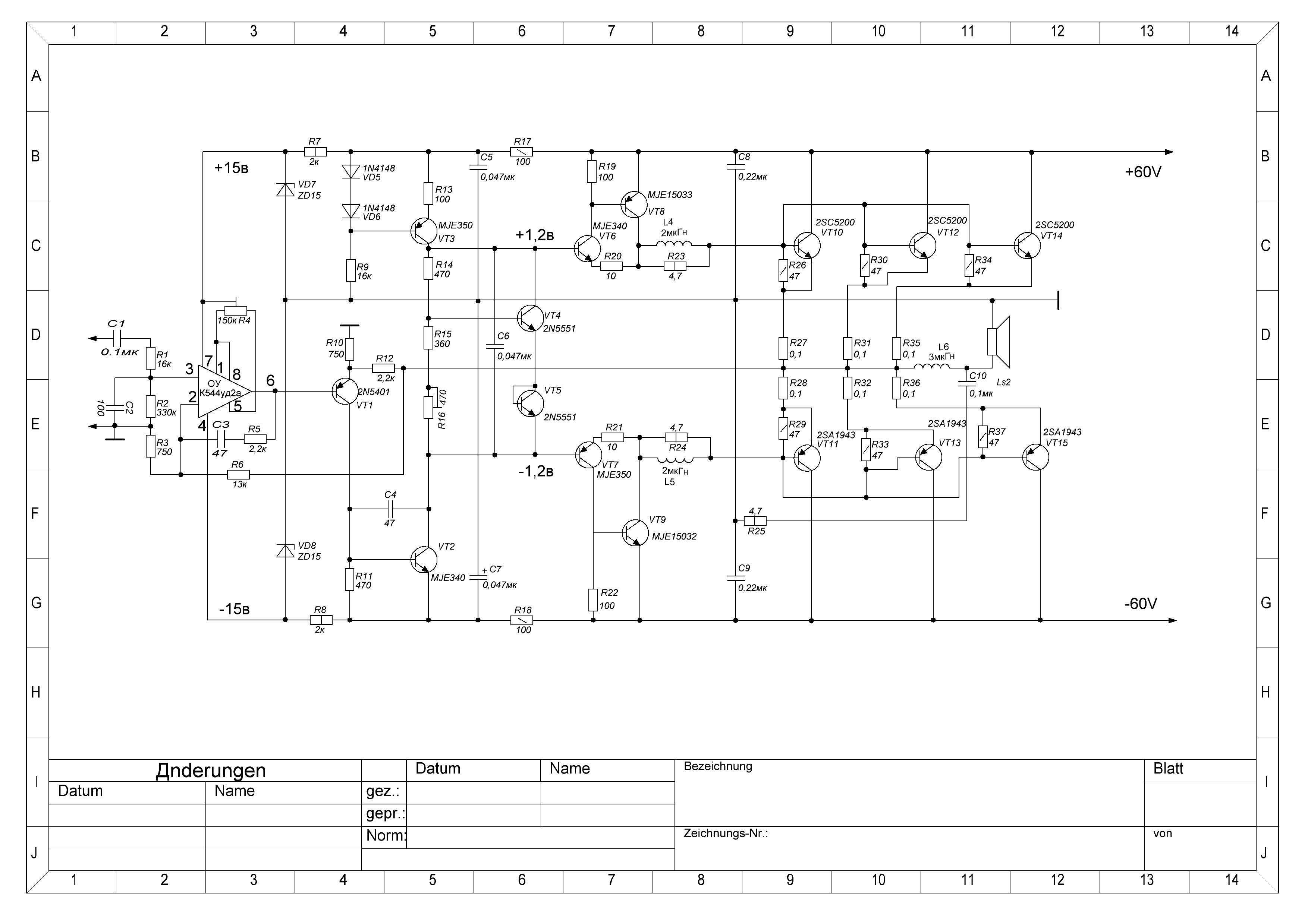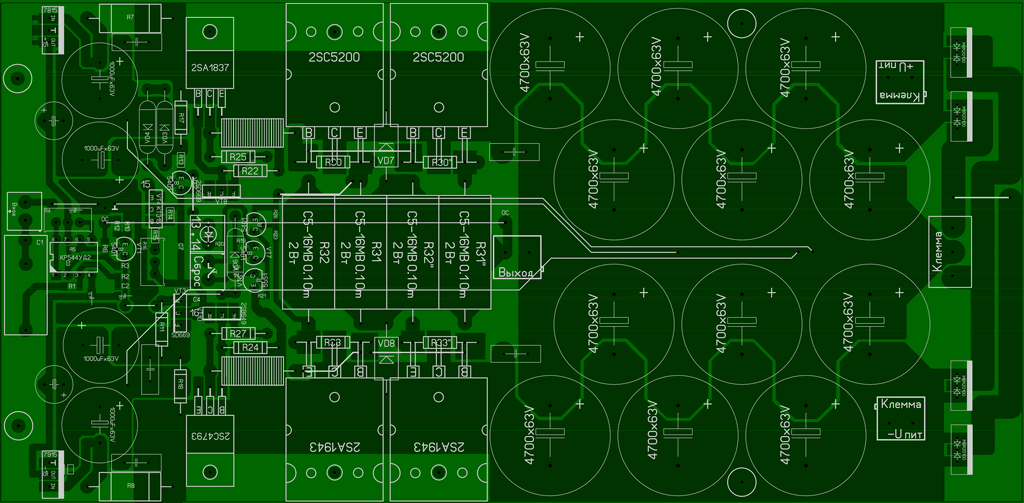 Собрал этот Усь в 85-м, с предом к нему повозился, собирал несколько ниодин не звучал в 87 соеденил его с предом из ВРЛ №98 Е. Девятова и получился Полный УСь, ииии - досих пор работает. За эти 23 года рядом стояли разные изделия и Ямаха и Кенвуд, Сони, НАД и наши заводские Одисеи Бриги, сейчас СТОИТ Кембридж Аудио- Азур 540 но звучат они хуже. Менялась и акустика и уши "экспертов" результат один П.Зуев УМЗЧ с ООС 84 звучит очень!!! Характеристики своего варианта на помню P -~70w/4ом а остальное как получилось.
