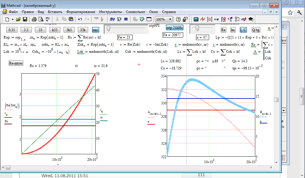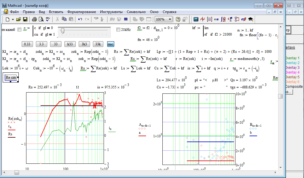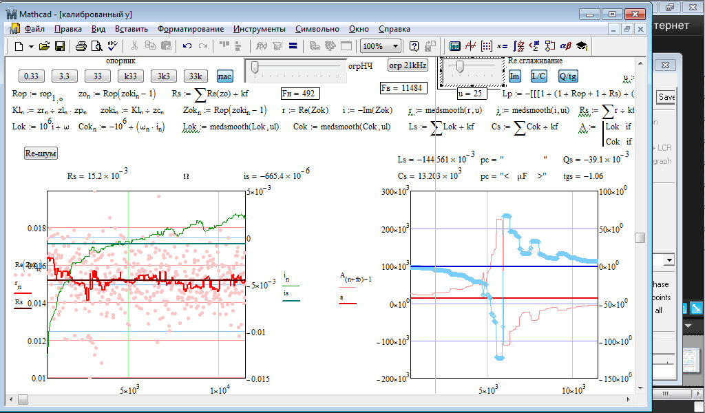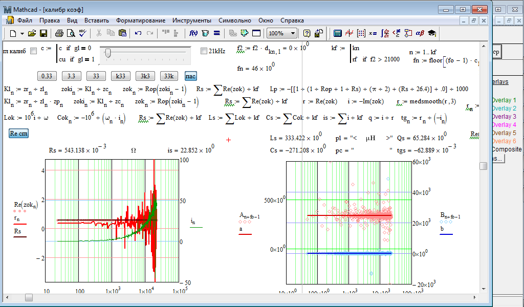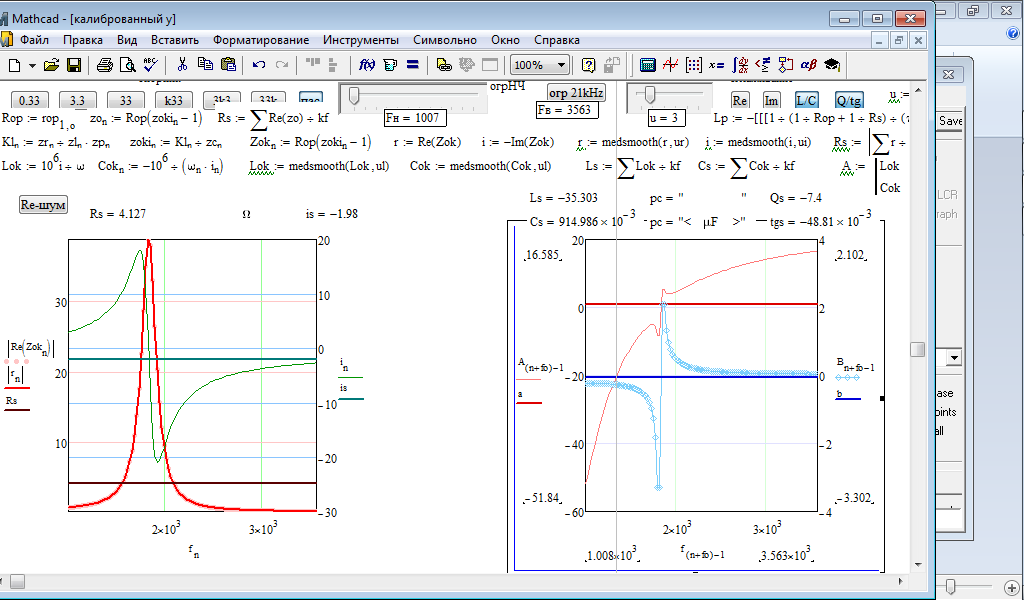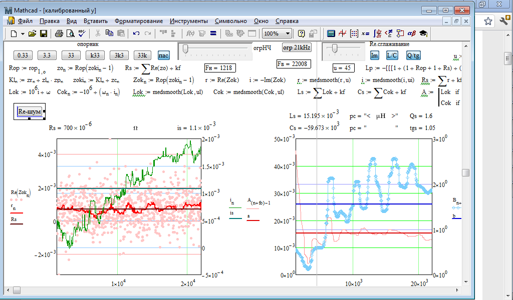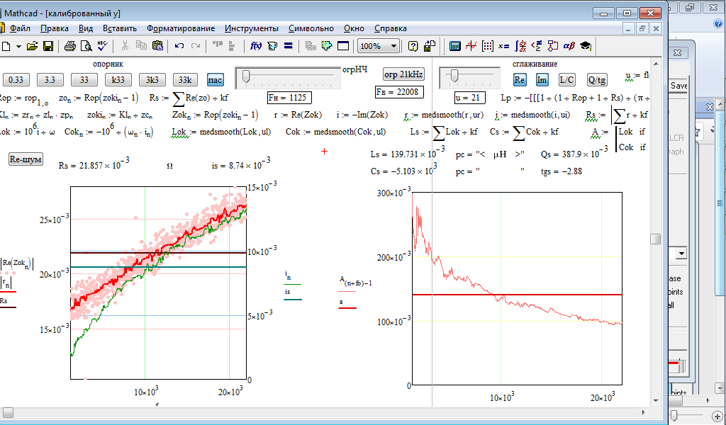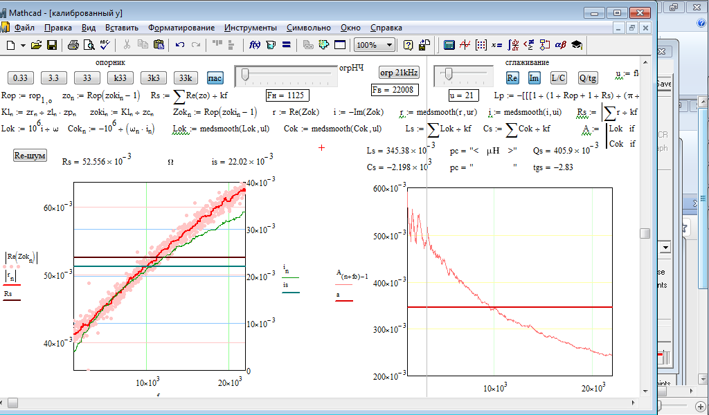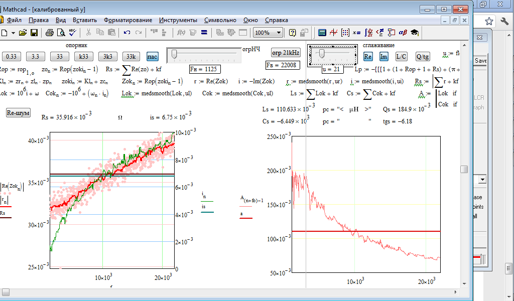 ID:	187065 - так выглядят висячие щупы в Маткаде (это пассивный вариант с опорником 82Ома), так же можно посмотреть зависимость реактивностей, сопротивлений, потерь от частоты, сгладить графики, изменить окно измерения