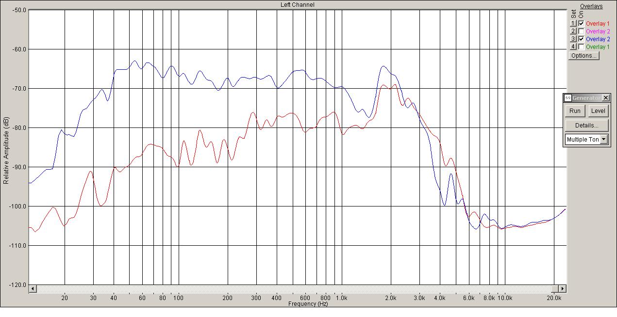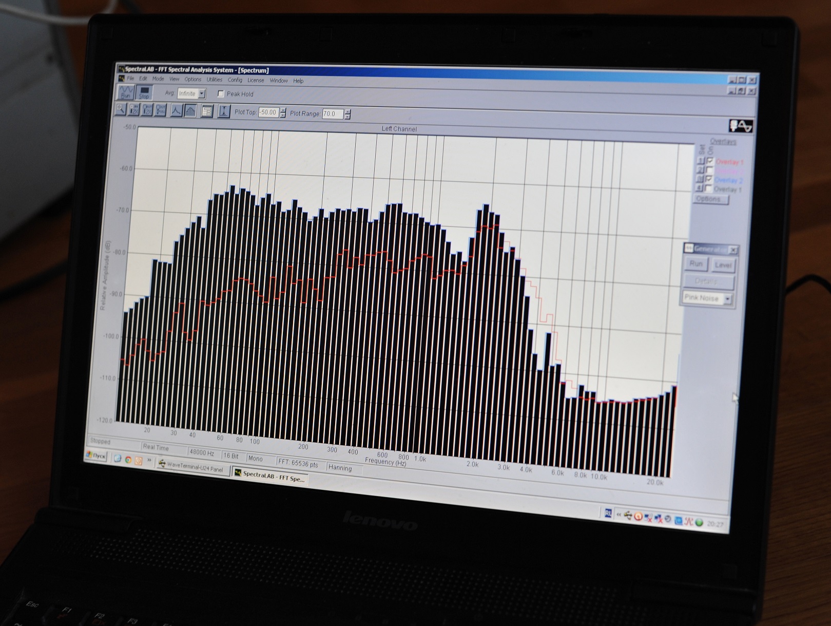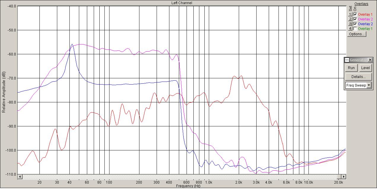 15А резонанс, добротность. Свип до 500 герц. Та которая красная это шумом (она по уровню завалена. ручки крутили)